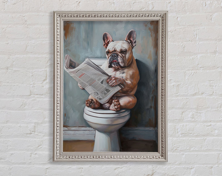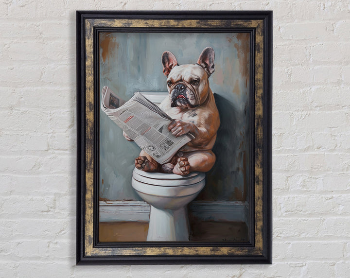 Add a touch of whimsy to your home with our French Bulldog On The Toilet Framed Print. This delightful piece of framed art captures a cheeky French Bulldog in a humorous moment. Available in six sizes, from small to oversized, you can find the perfect fit for any space. Choose from a variety of colors to match your decor effortlessly. Each print is handmade in the United Kingdom, ensuring top-notch quality and attention to detail. Ready to hang, this artwork makes decorating easy and fun. Brighten up your living room, bathroom, or office with a unique and charming piece that will surely make everyone smile.