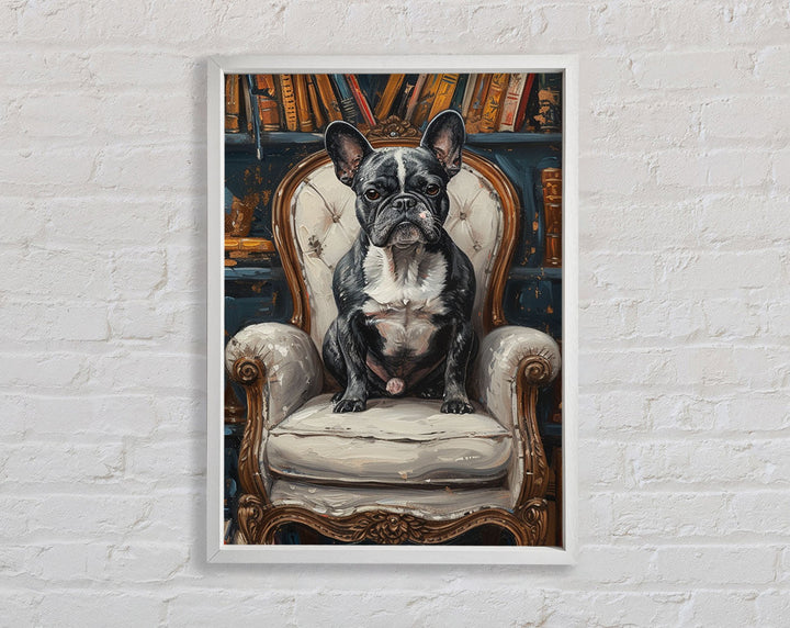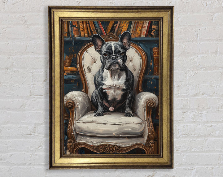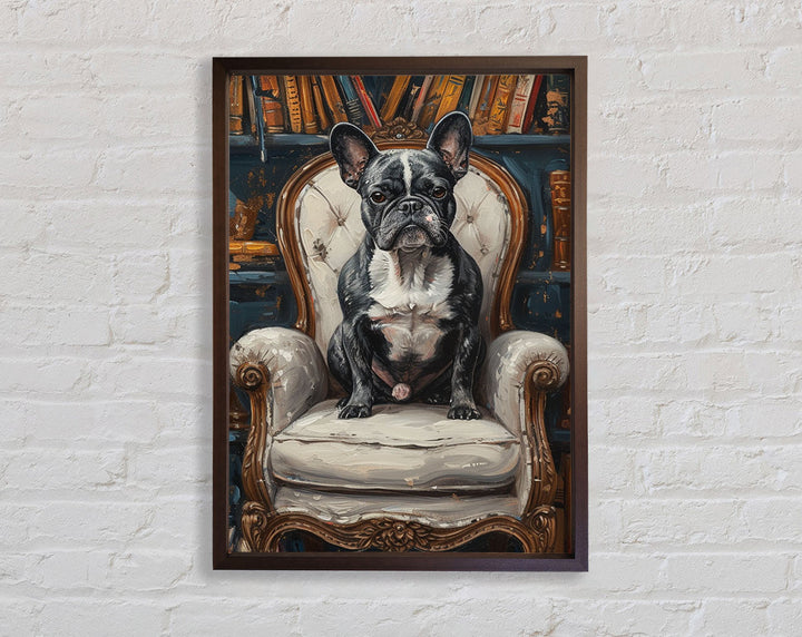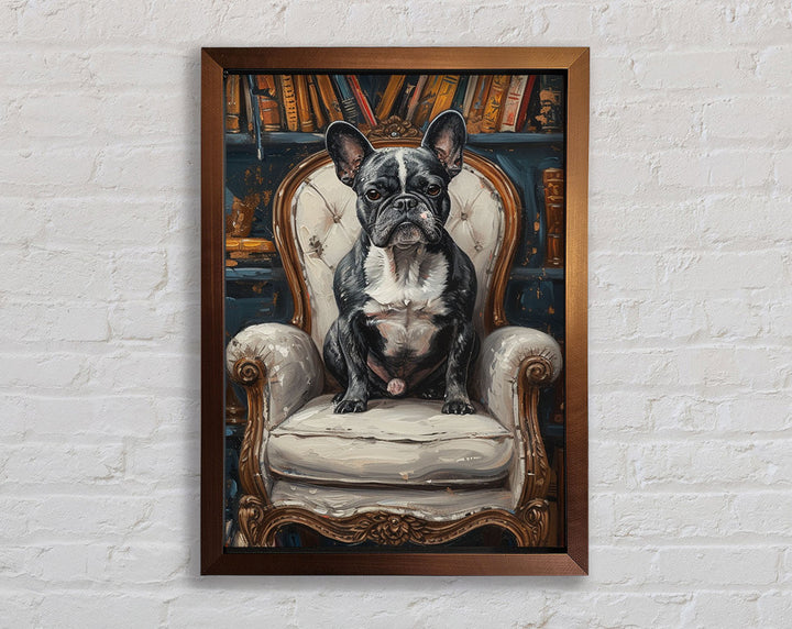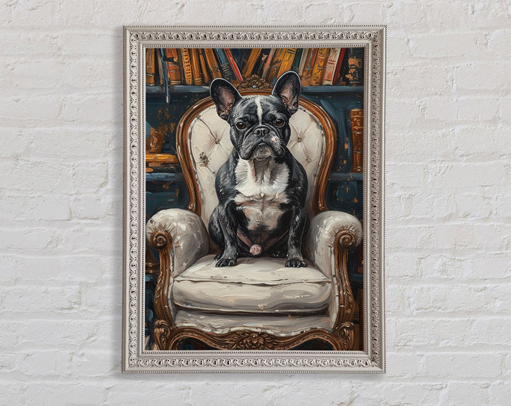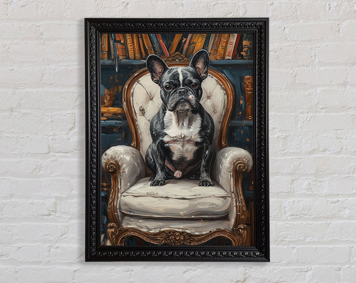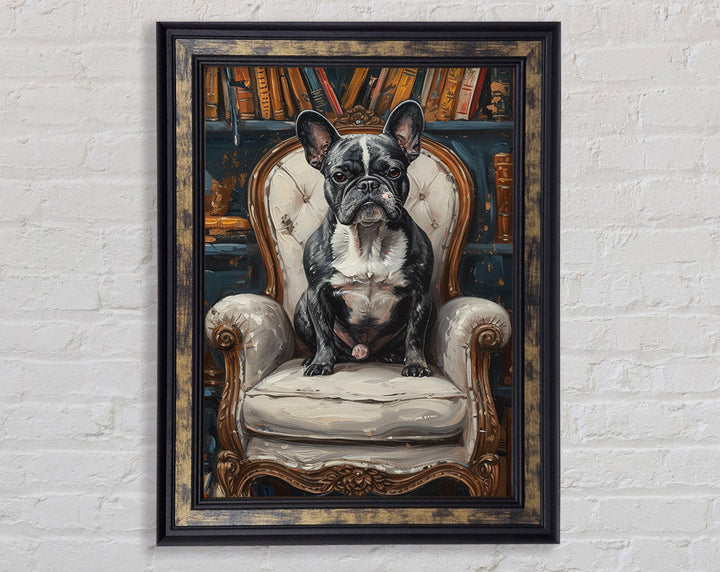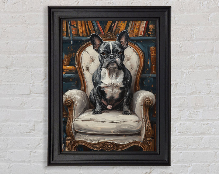 Introducing the Frenchie Chair Framed Print, a delightful piece of framed art that adds charm to any space. This print features a cute French Bulldog lounging on a stylish chair, perfect for dog lovers and art enthusiasts alike. Available in six sizes, from small to oversized, it fits perfectly in any room, whether it's a cozy corner or a grand living area.