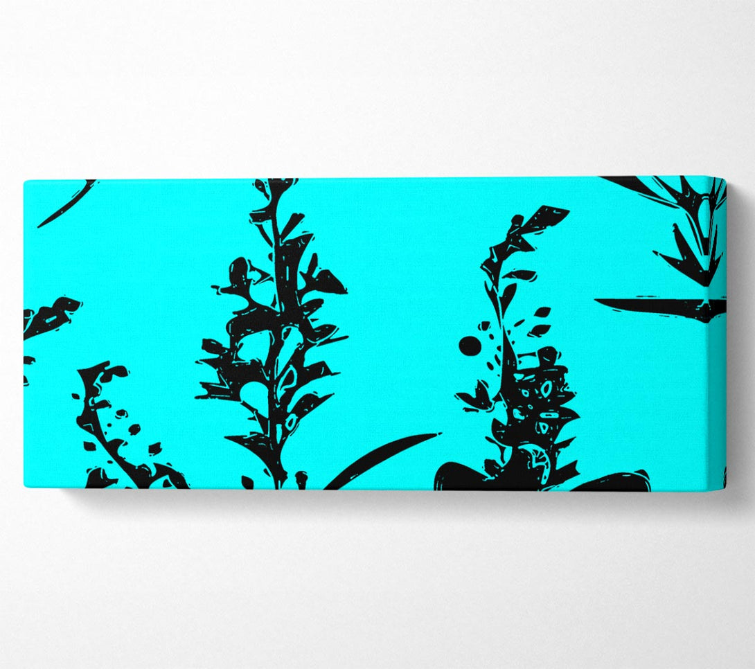 Freshness Of Beauty Aqua Black canvas, printed on coated polyester canvas. Mounted on to a 44mm box frame, ready to hang.