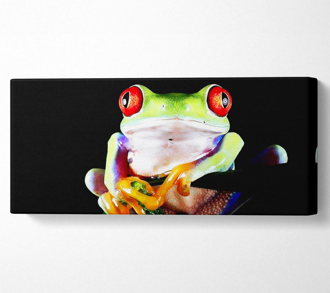 Frog Eyes canvas, printed on coated polyester canvas. Mounted on to a 44mm box frame, ready to hang.