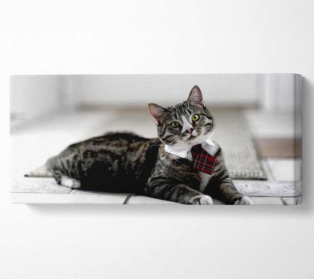 Funny Cat Wears Tie canvas, printed on coated polyester canvas. Mounted on to a 44mm box frame, ready to hang.