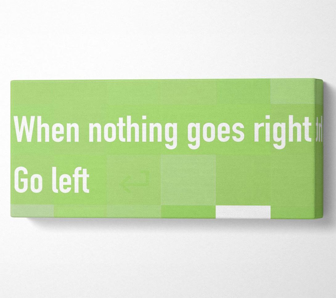 Funny Quote When Nothing Goes Right Lime Green canvas, printed on coated polyester canvas. Mounted on to a 44mm box frame, ready to hang.