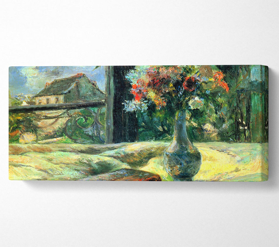 Picture of Gauguin Flower Vase In Window Panoramic Canvas Wall Art