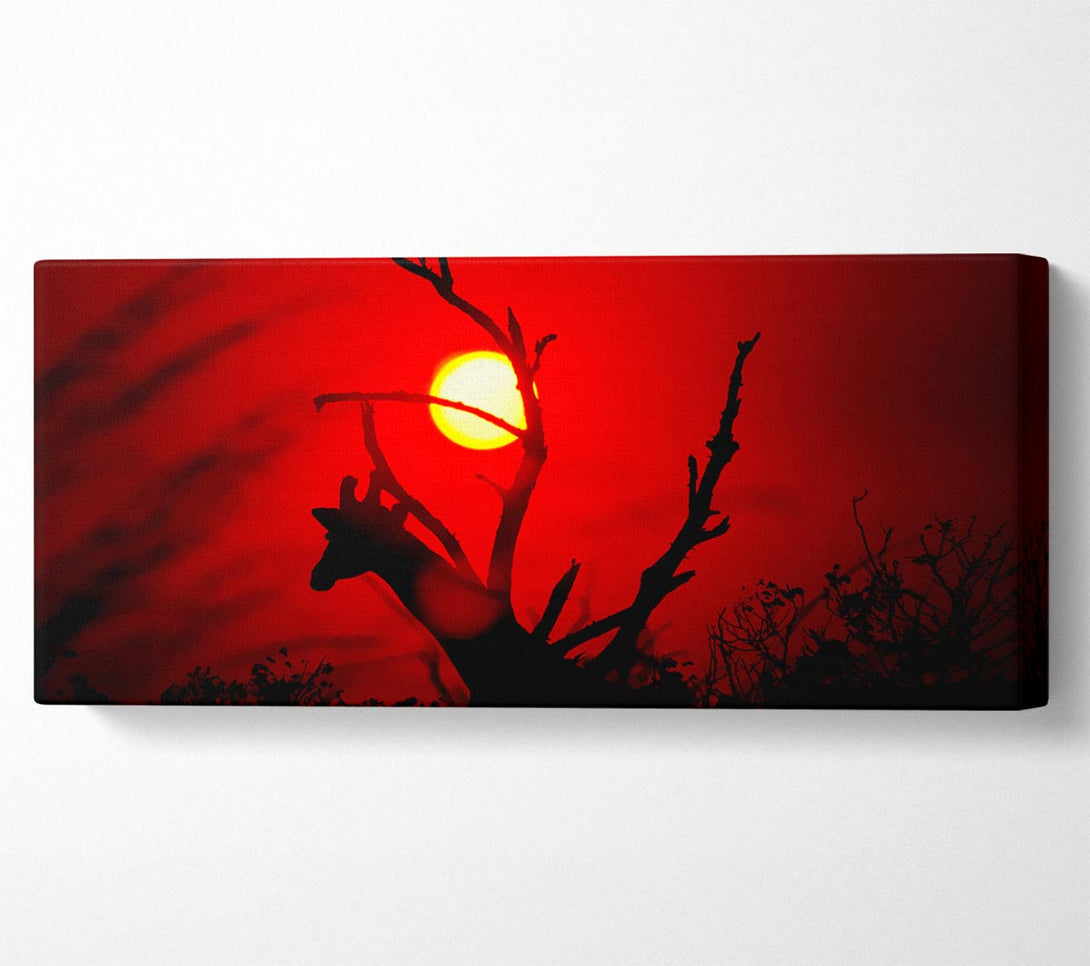 Picture of Giraffe At Sunset Panoramic Canvas Wall Art