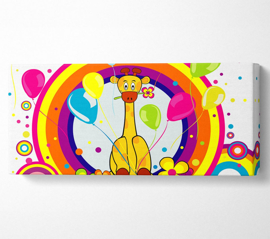 Picture of Giraffe Balloon Circles White Panoramic Canvas Wall Art