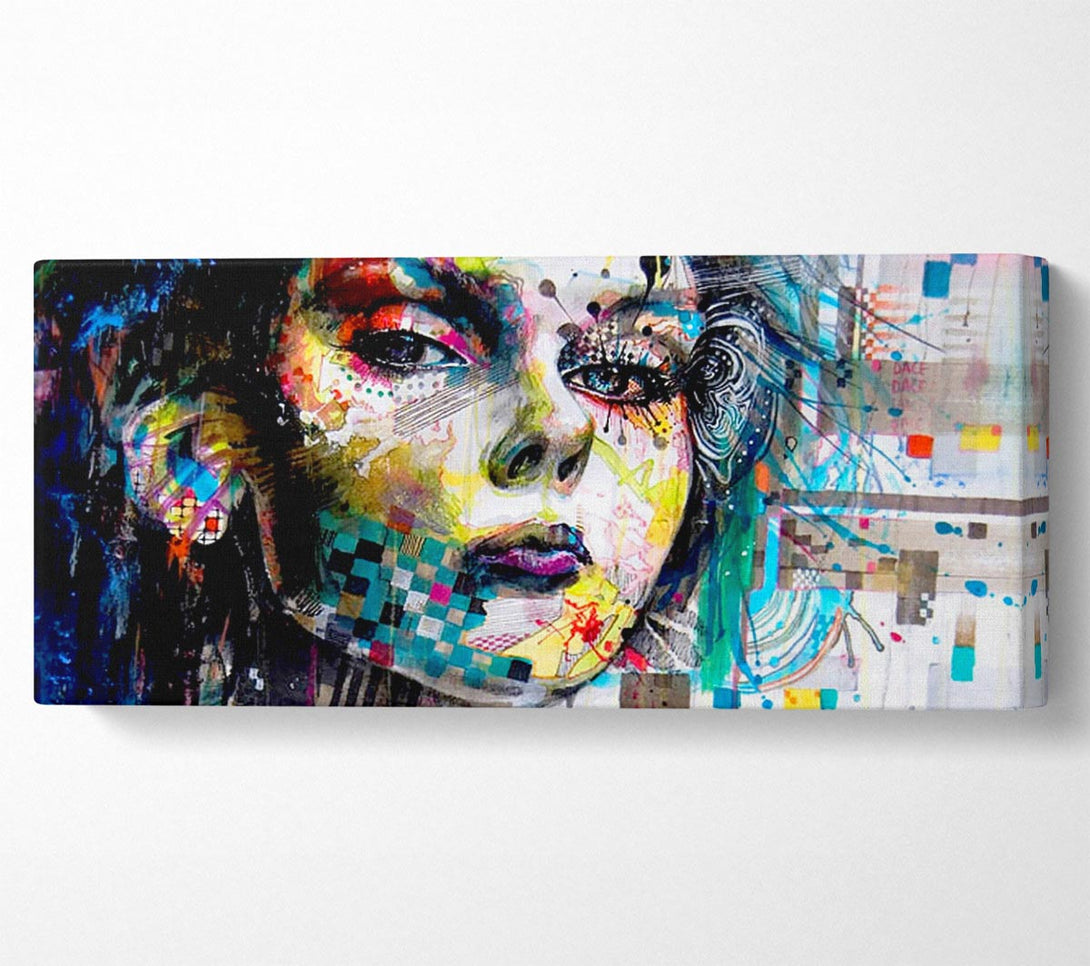 Girl Colours canvas, printed on coated polyester canvas. Mounted on to a 44mm box frame, ready to hang.
