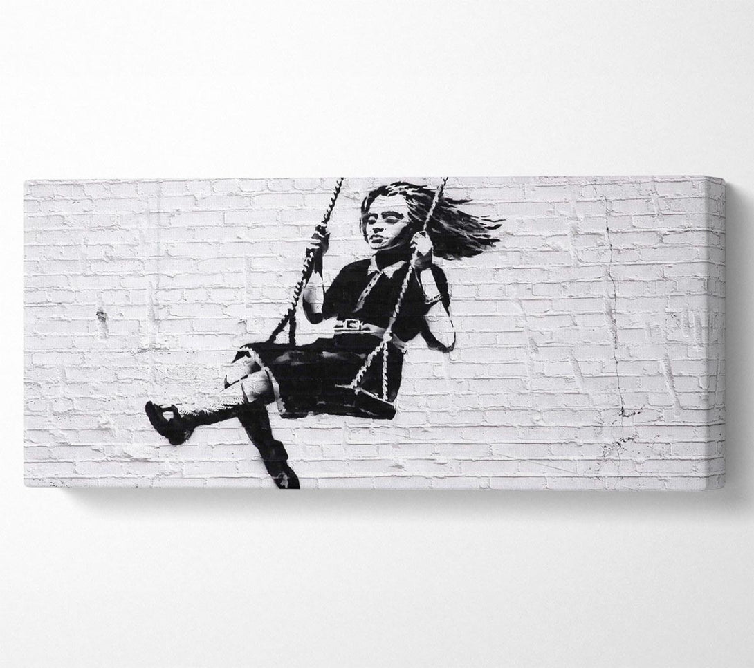 Girl On Swing canvas, printed on coated polyester canvas. Mounted on to a 44mm box frame, ready to hang.