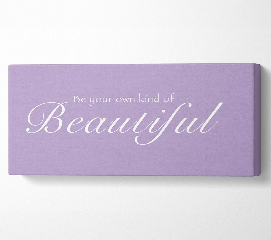 Girls Room Quote Be Your Own Kind Of Beautiful Lilac canvas, printed on coated polyester canvas. Mounted on to a 44mm box frame, ready to hang.