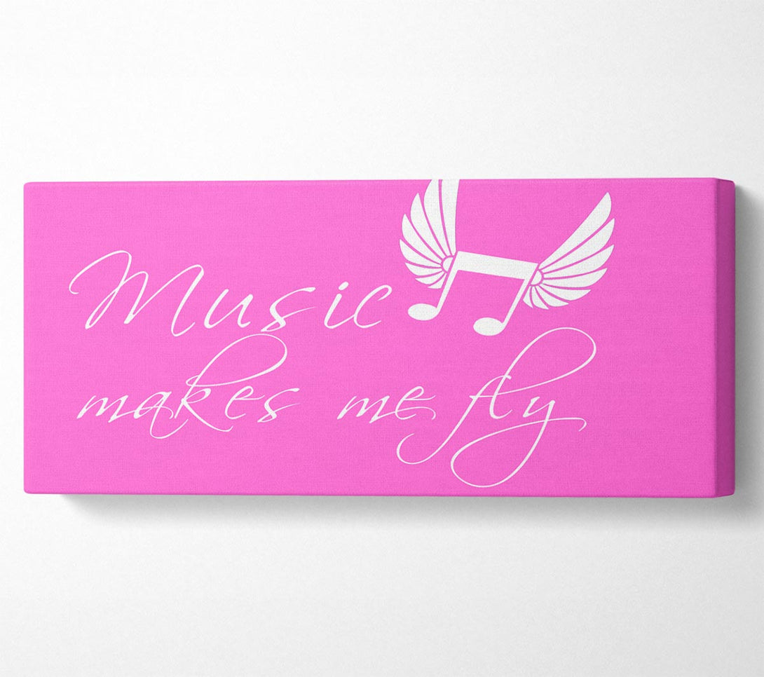 Picture of Girls Room Quote Music Makes Me Fly Vivid Pink Panoramic Canvas Wall Art