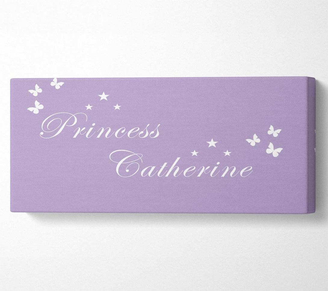 Girls Room Quote Your Own Name Princess Lilac canvas, printed on coated polyester canvas. Mounted on to a 44mm box frame, ready to hang.