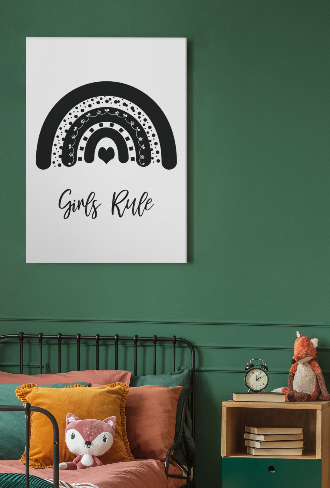Girls Rule Rainbow Monochrome Boho Children's Room Wall Bedroom Decor Print