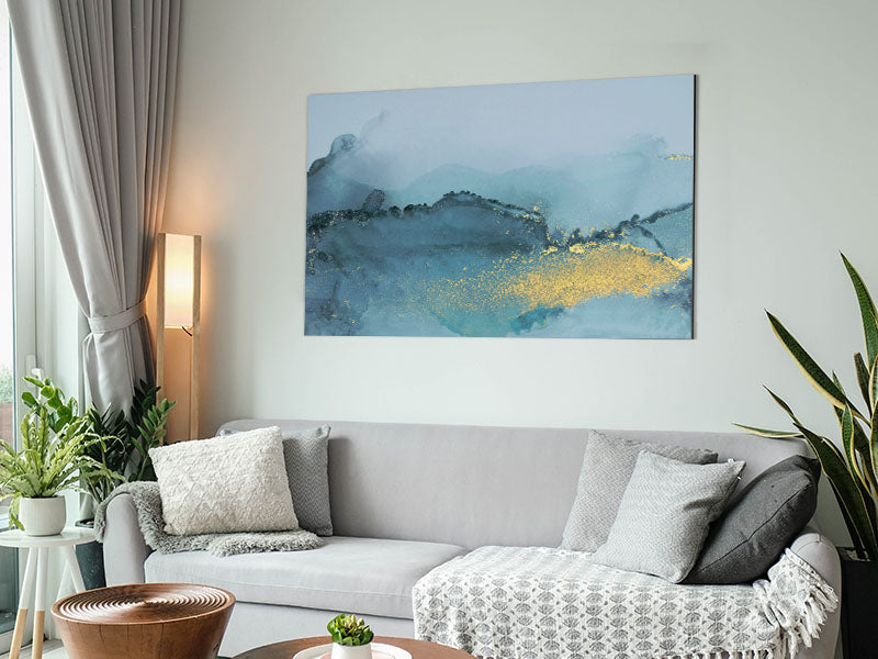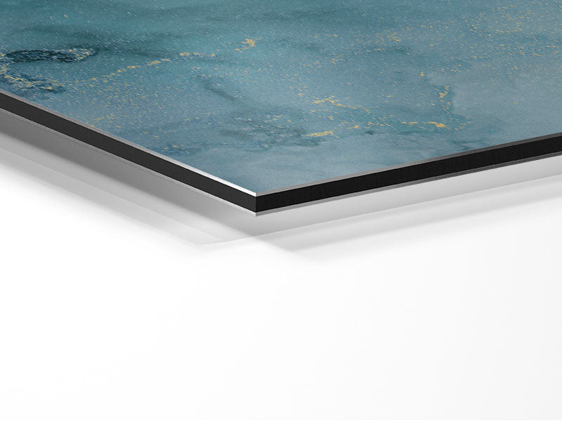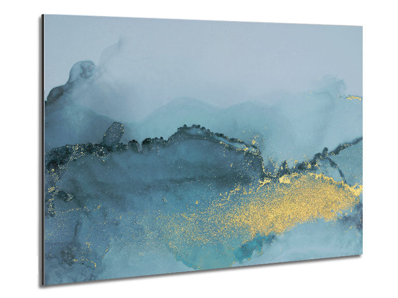 Glitter Gold On Blue Printed on brushed aluminium dibond. A modern way to display art and easy to maintain.