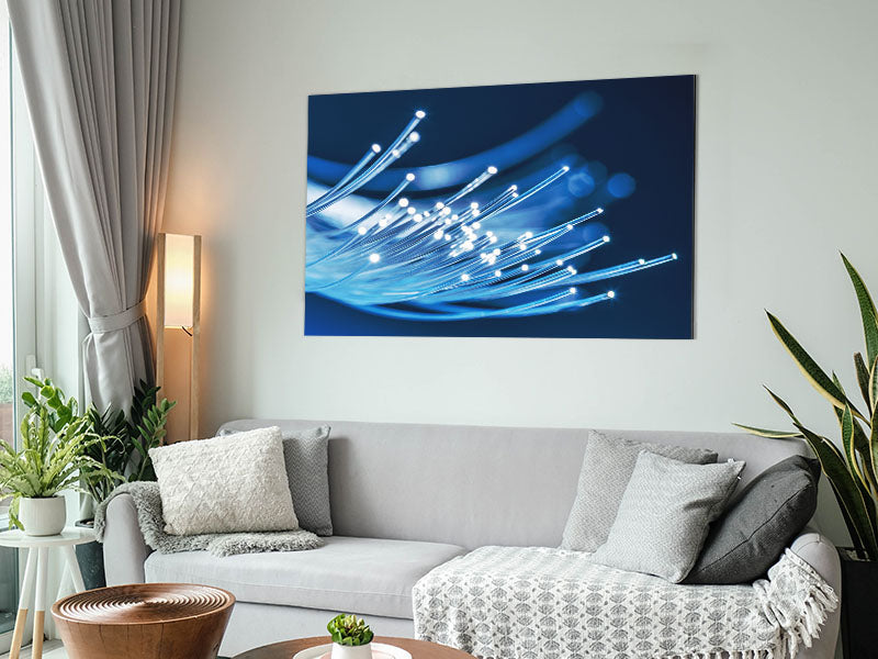 Glowing Blue crystals Printed on brushed aluminium dibond. A modern way to display art and easy to maintain.