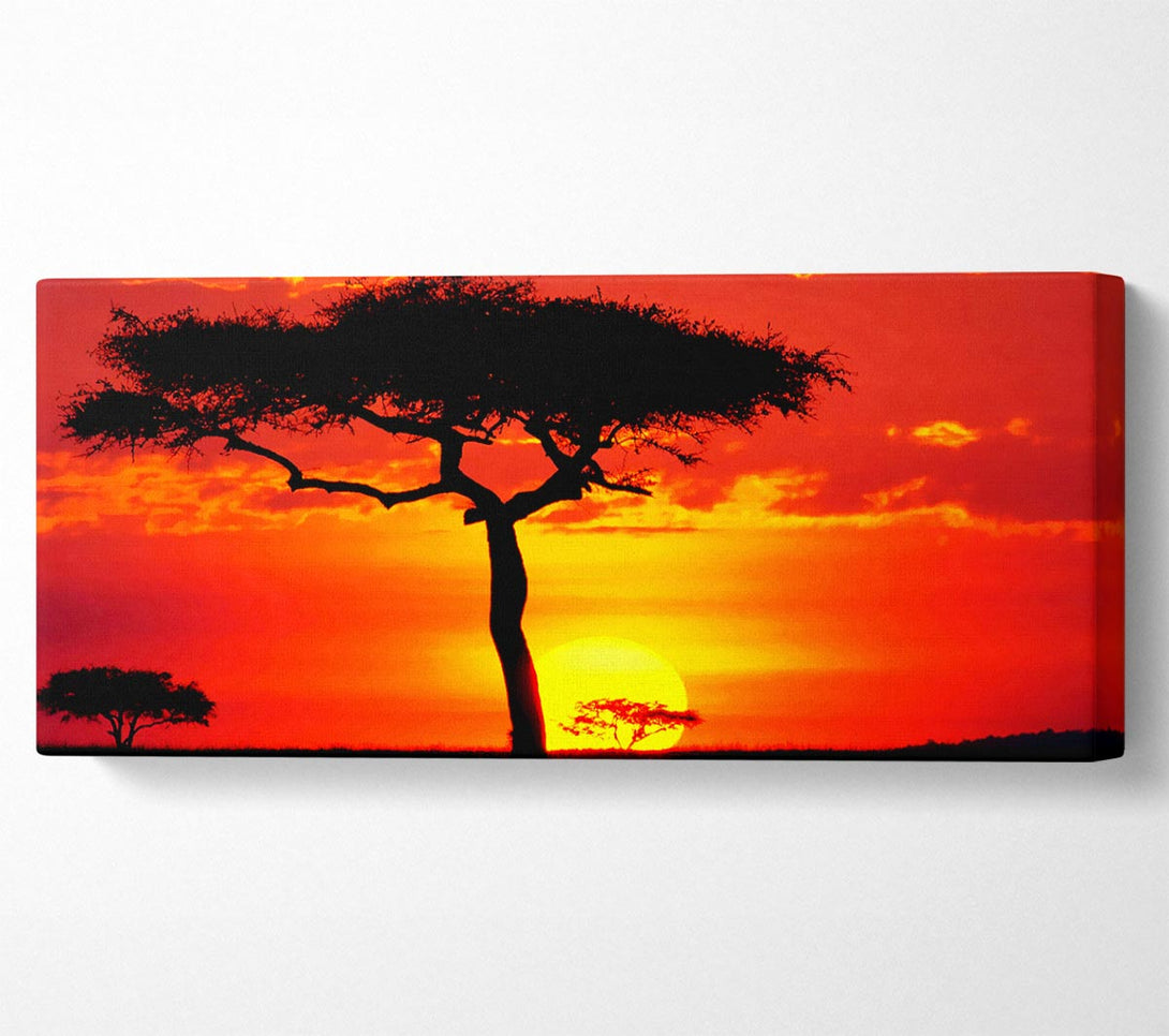 Picture of Glowing Orange African Tree Panoramic Canvas Wall Art