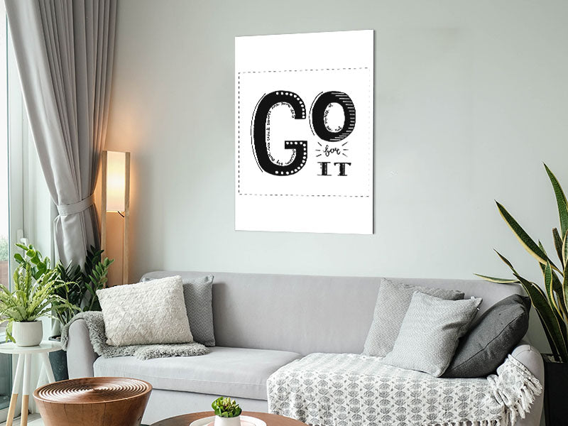 Go For It Printed on brushed aluminium dibond. A modern way to display art and easy to maintain.