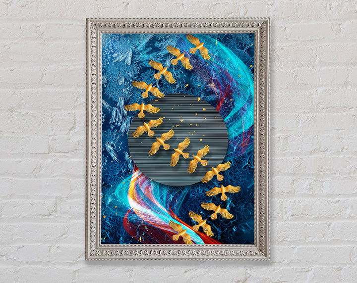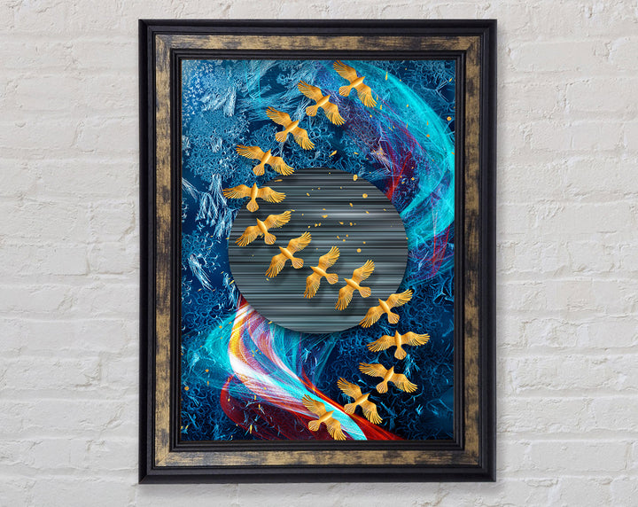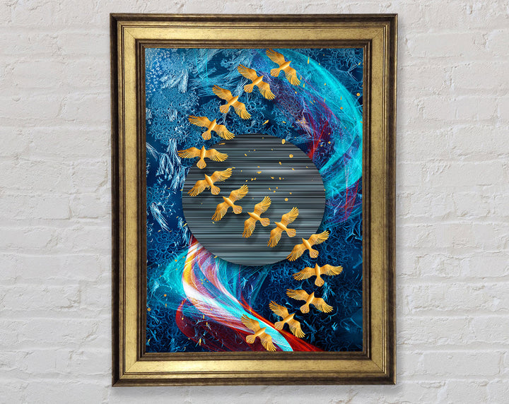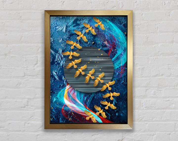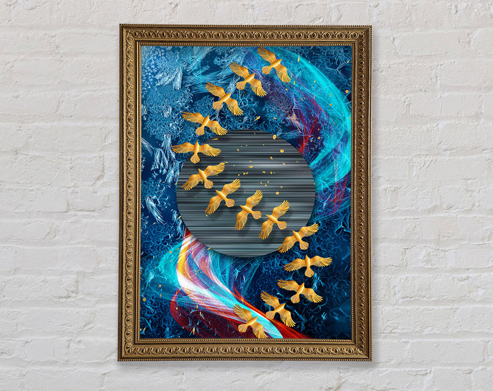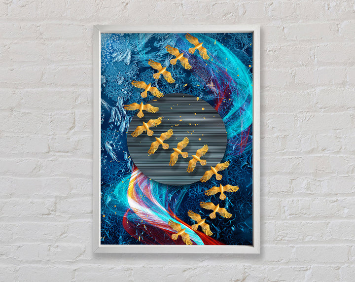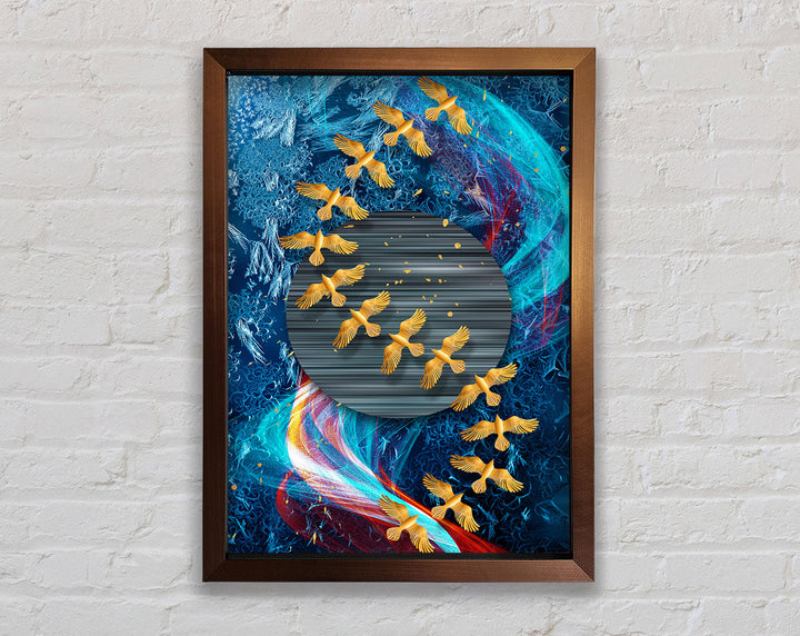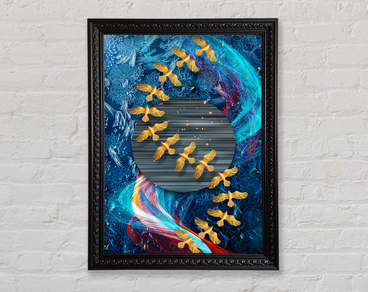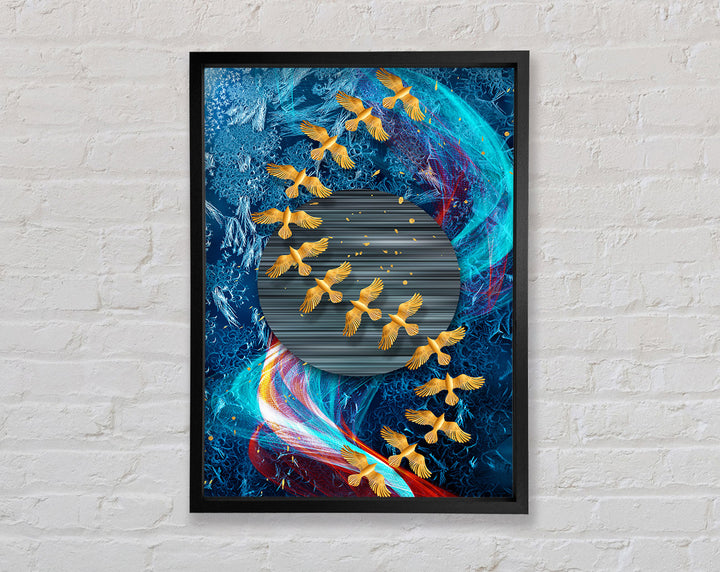 Add a touch of elegance to your home with the Gold Birds Abstract Waves Framed Print. This stunning piece of framed art features graceful birds set against mesmerizing wave patterns, creating a captivating visual effect. Available in six sizes, from small to oversized, this print can fit any space, whether it’s a cozy nook or a grand living room wall. Choose from a variety of colors to match your decor perfectly. Each piece is handmade in the United Kingdom, ensuring high quality and attention to detail. Ready to hang, this framed print makes a perfect addition to your home or a thoughtful gift for any art lover.