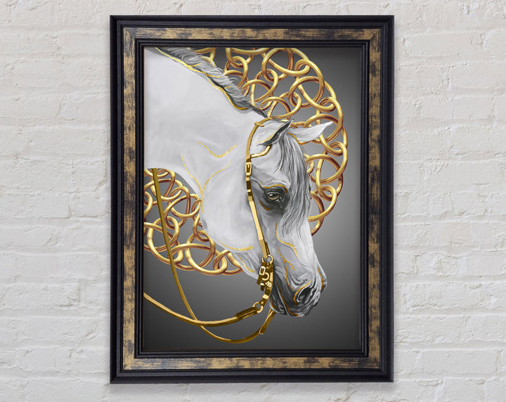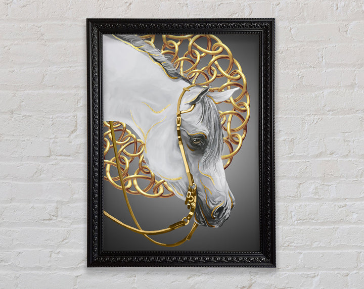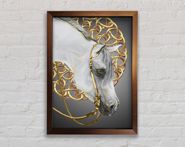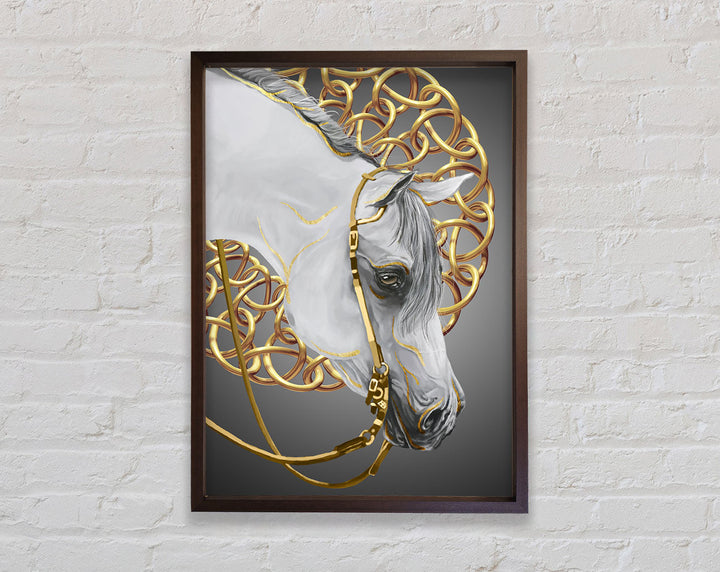 Add a touch of elegance to your home with the Gold Chains On Walnut Horse Framed Print. This exquisite piece of framed art captures the majestic beauty of a walnut horse adorned with gold chains, creating a stunning focal point for any room. Available in six sizes, from small to oversized, this print fits perfectly in any space. Choose from a variety of colors to match your decor. Each piece is handmade in the United Kingdom, ensuring top-notch quality and craftsmanship. Plus, it's ready to hang, making it easy to elevate your home’s aesthetic instantly. Transform your walls with this unique and sophisticated artwork.