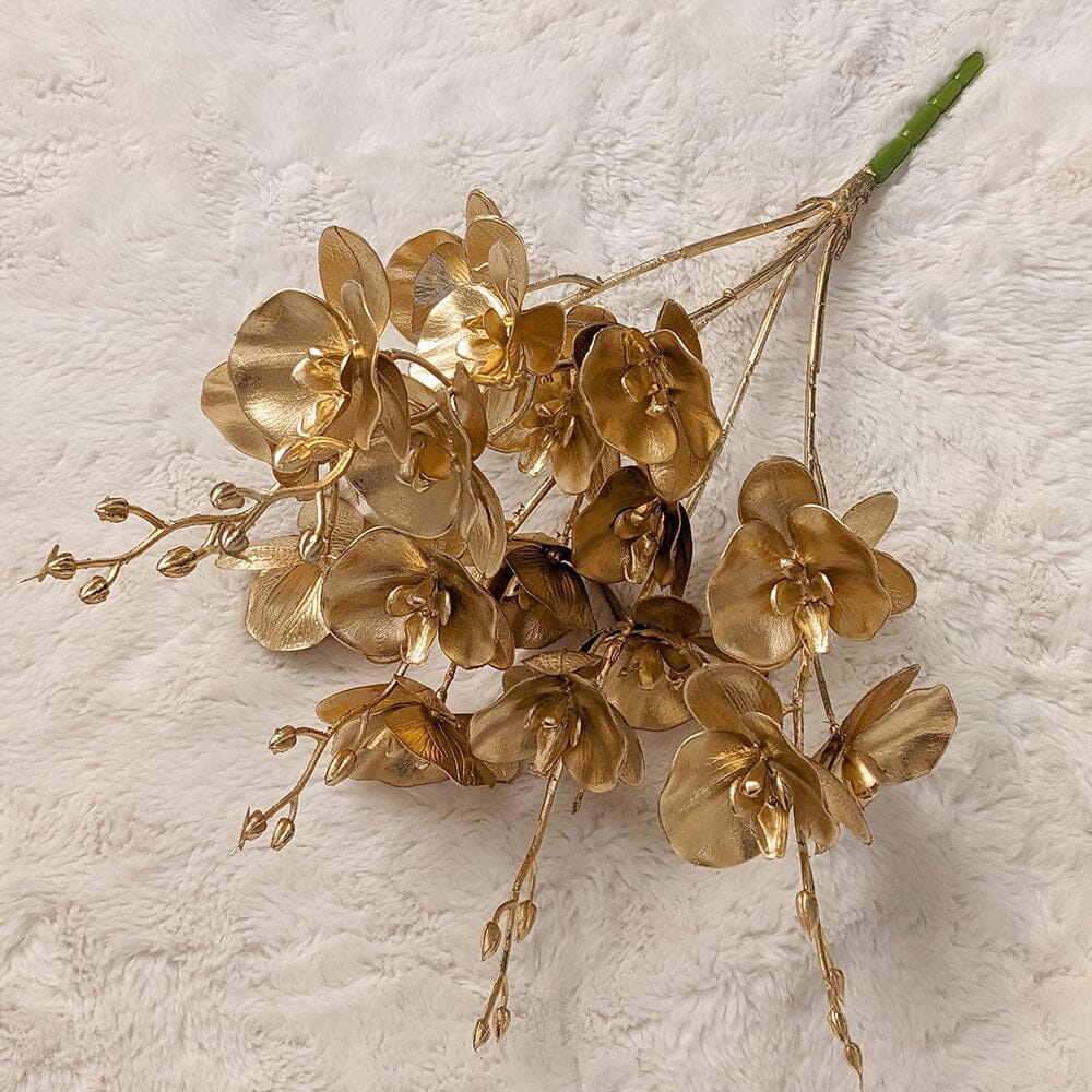 Indulge in opulence with the Gold Faux Orchid Single Stem Floral.