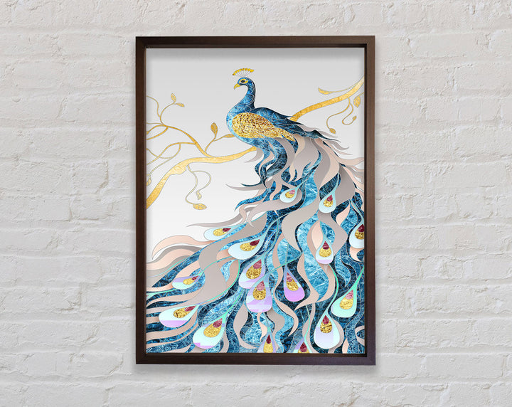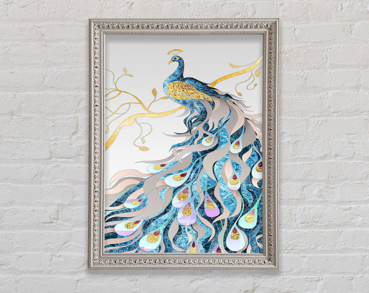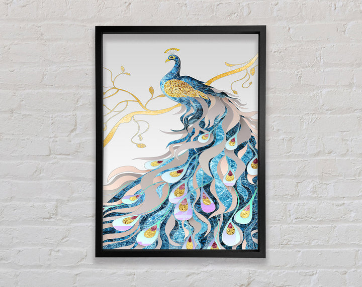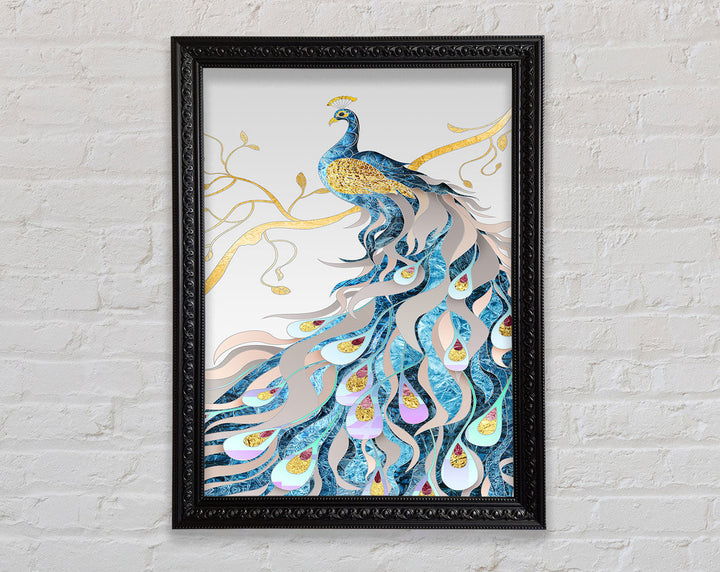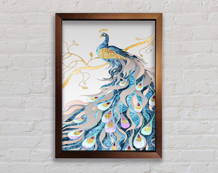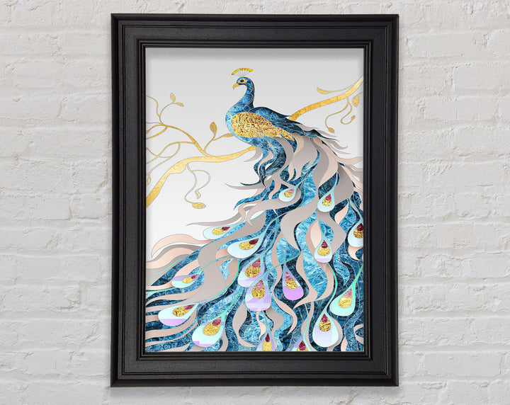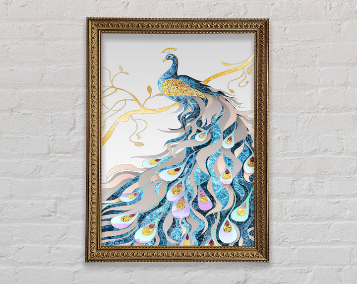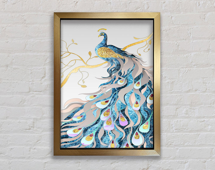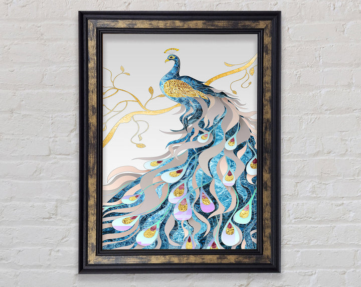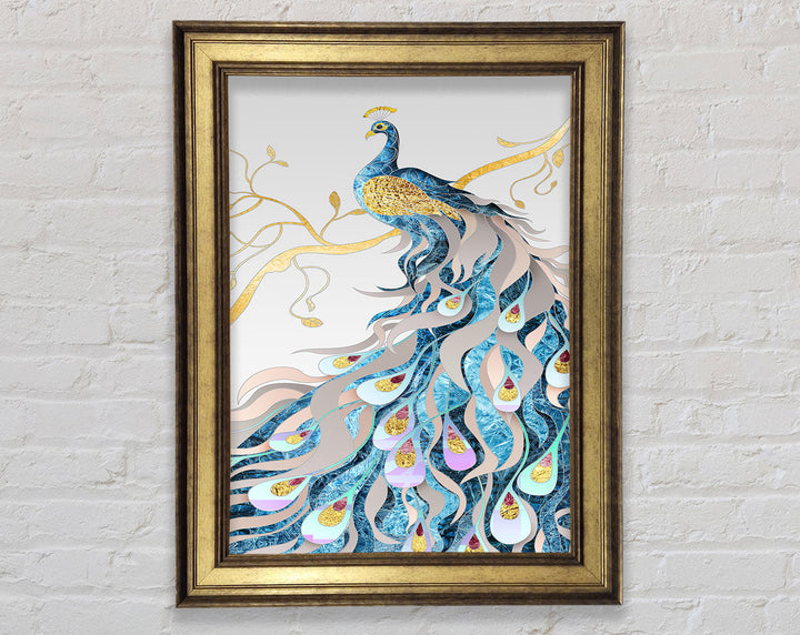 Gold Lined Peakcock Framed Print
