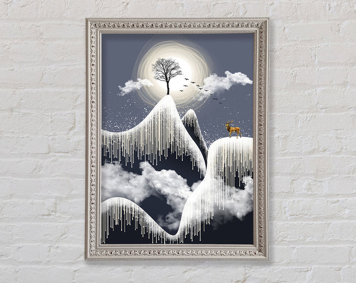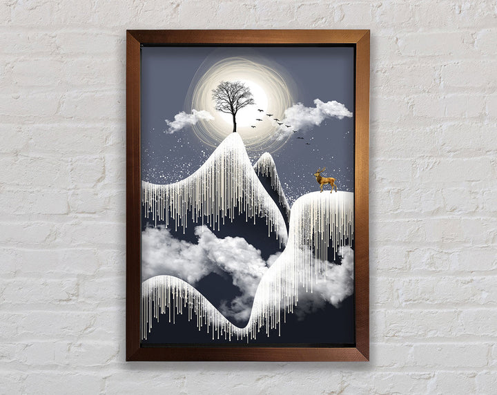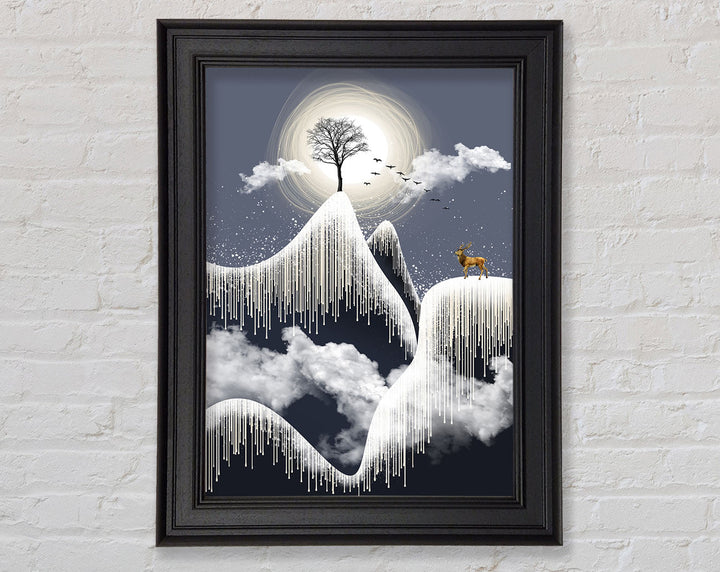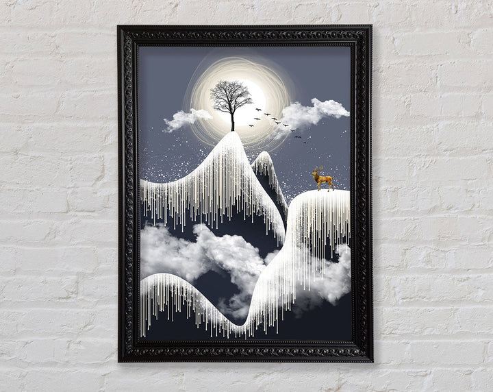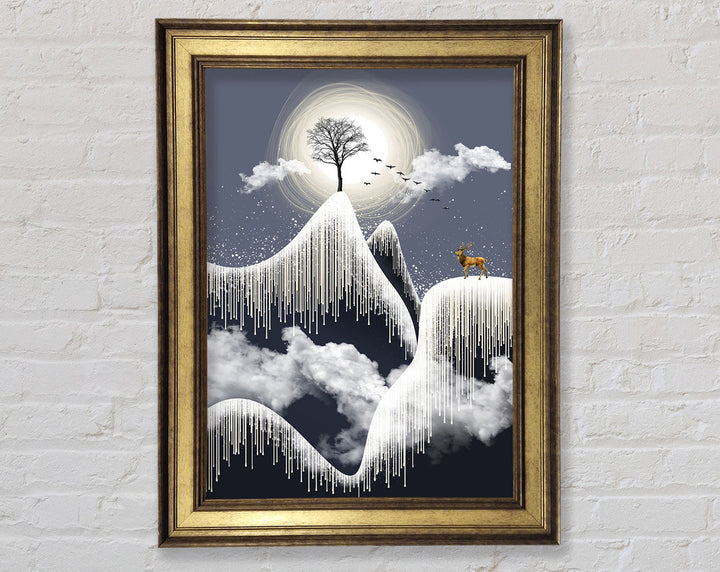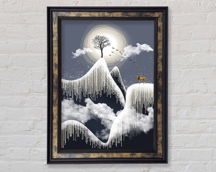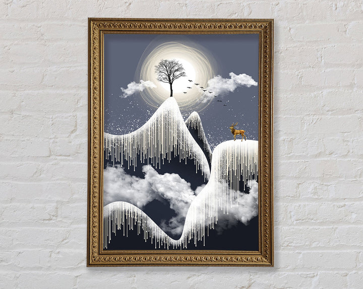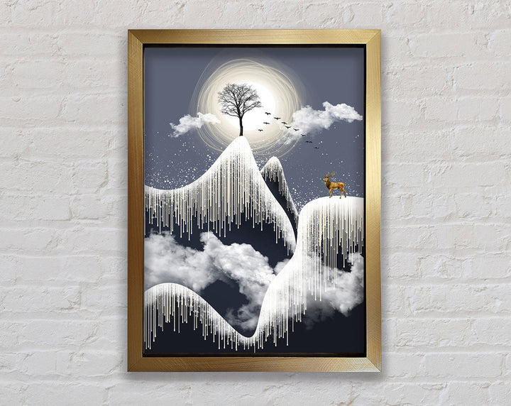 Introducing the Gold Stag Mountain Framed Print, a stunning piece of framed art that will add elegance to any room. This beautiful artwork captures a majestic stag set against a serene mountain backdrop, accentuated with touches of gold for a luxurious feel. Available in six sizes, ranging from small to oversized, it fits perfectly in any space. Choose from a variety of colors to match your decor. Each piece is handmade in the United Kingdom, ensuring top-notch quality and craftsmanship. The print comes ready to hang, making it easy to elevate your home's style instantly. Transform your living space with this captivating framed art today.