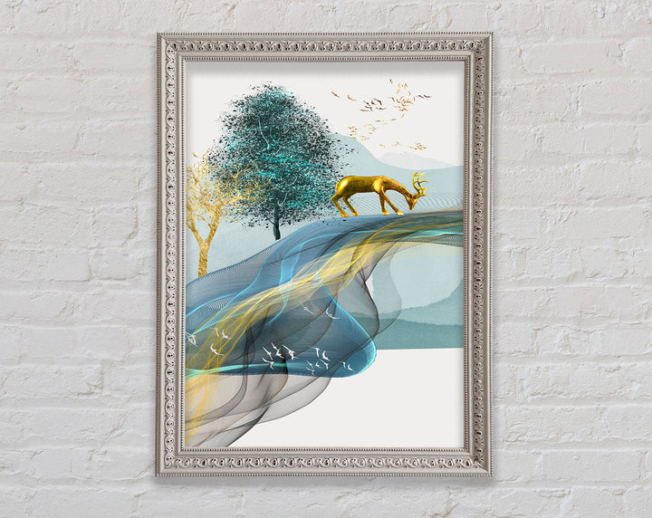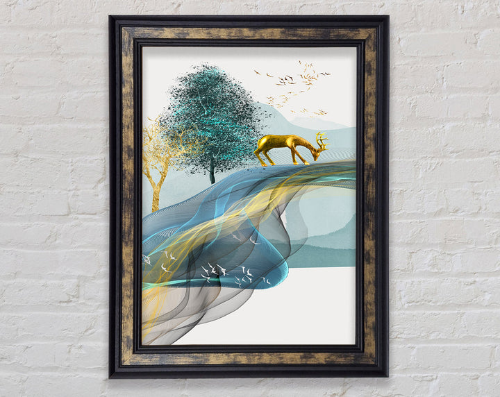 Introducing the Gold Stag Trees Framed Print, a stunning piece of framed art that will elevate any room’s decor. This exquisite print features a majestic stag standing gracefully among golden trees, bringing a touch of nature and elegance to your space. Available in six sizes, from small to oversized, you can find the perfect fit for any wall. Choose from a variety of colors to match your interior style. Each piece is handmade in the United Kingdom, ensuring top-notch craftsmanship and quality. Ready to hang right out of the box, this framed art offers a hassle-free way to add sophistication and charm to your home.