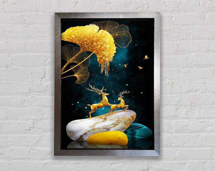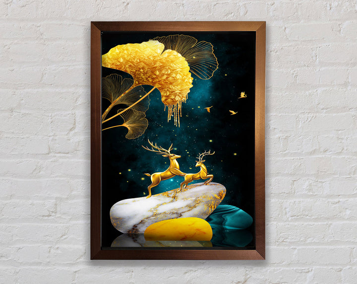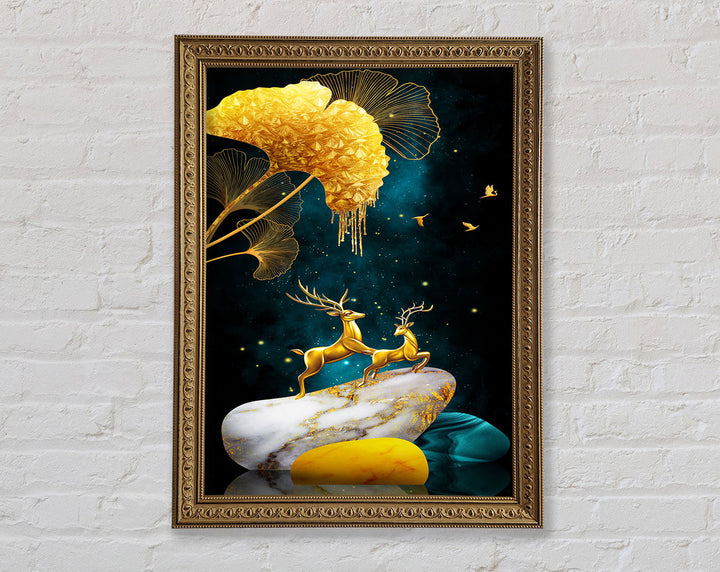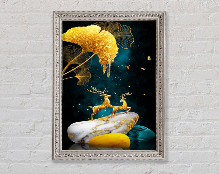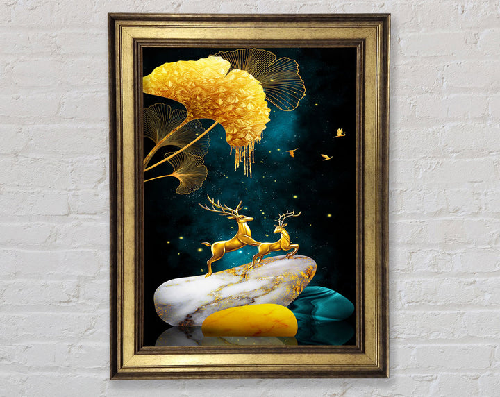 Gold Stone Reindeer Framed Print