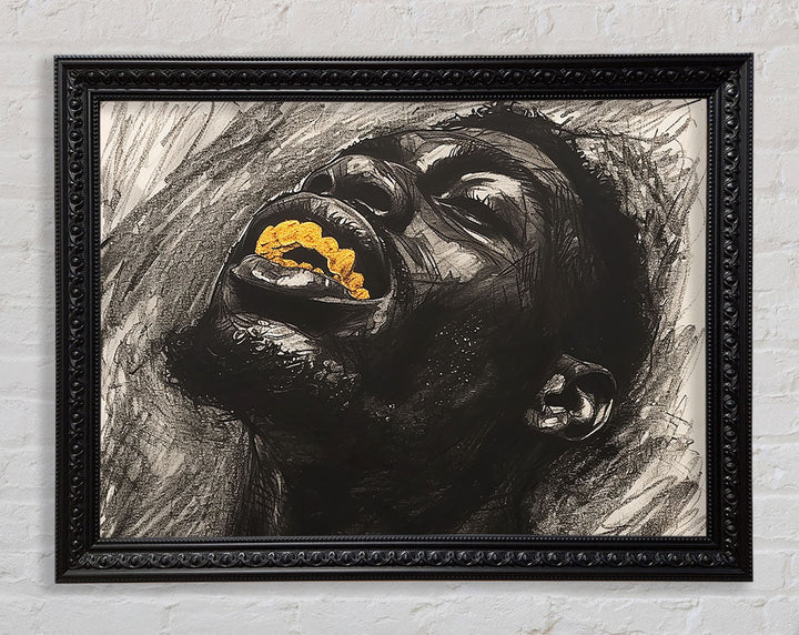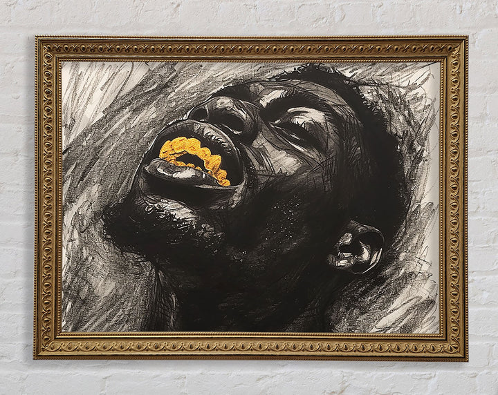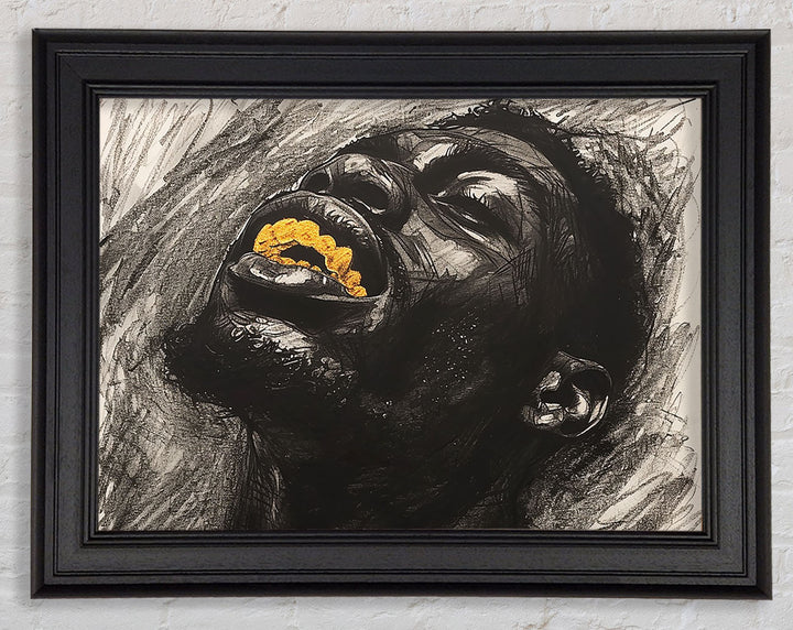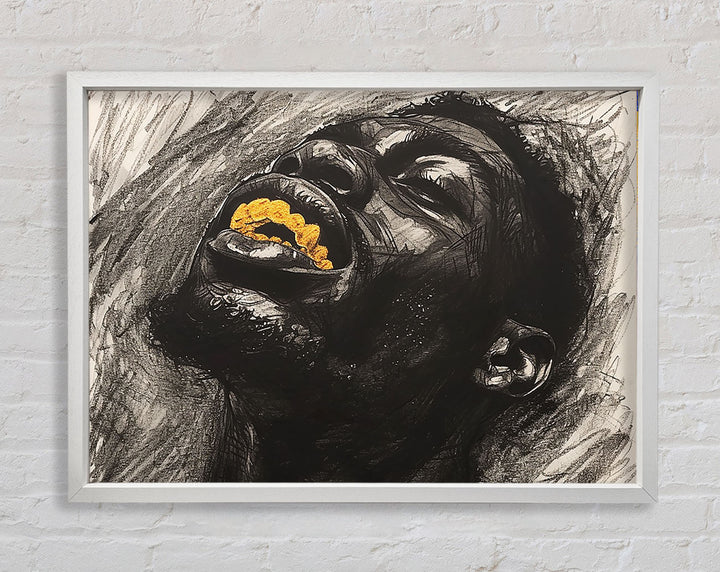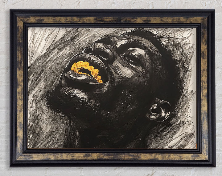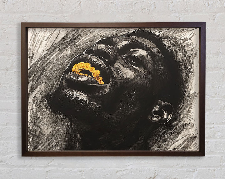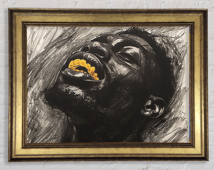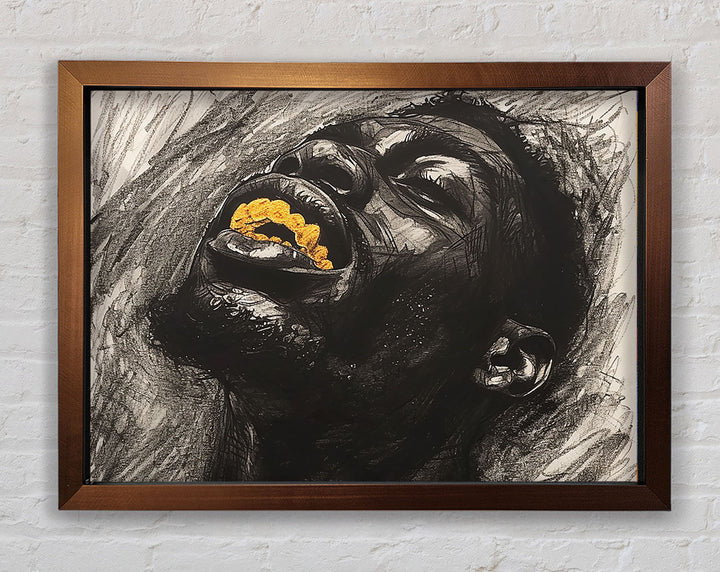 Add a touch of bold elegance to your space with the Gold Teeth Man Framed Print. This stunning piece of framed art is available in six sizes, ranging from small to oversized, ensuring a perfect fit for any room. Each print is meticulously handmade in the United Kingdom, showcasing exceptional craftsmanship. The vibrant colors and striking design make it a standout feature on any wall. Ready to hang, this framed print offers both convenience and style. Whether you're looking to add character to your living room or make a statement in your office, the Gold Teeth Man Framed Print is the ideal choice.
