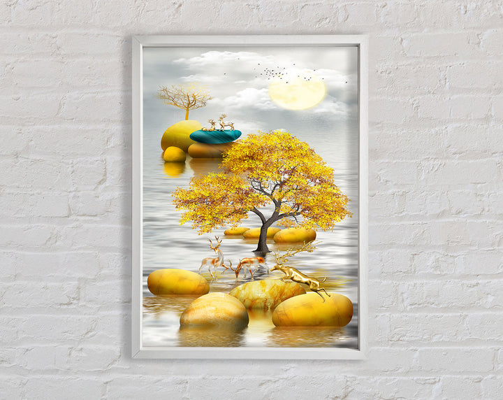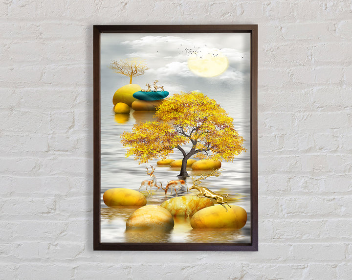 Introducing the Gold Tree River Framed Print, a stunning piece of framed art that brings nature's beauty into your home. Handcrafted in the United Kingdom, this exquisite artwork is available in six sizes, ranging from small to oversized, ensuring a perfect fit for any space. The print showcases a mesmerizing golden tree by a serene river, making it a captivating focal point in any room.