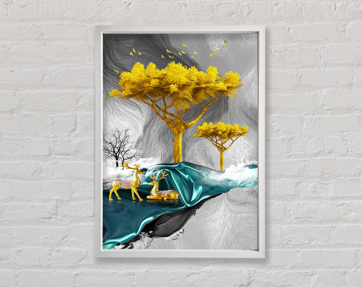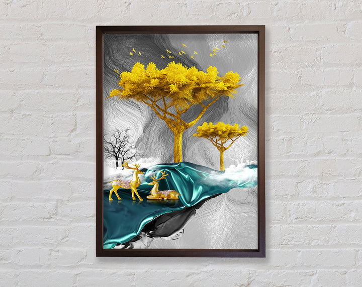 Add a touch of elegance to your home with the Gold Tree With Two Deers Framed Print. This stunning piece of framed art captures the serene beauty of nature with its detailed illustration of a gold tree and two graceful deer. Available in six sizes, from small to oversized, this print fits perfectly in any space. Choose from a variety of colors to match your decor. Each print is handmade in the United Kingdom, ensuring top-notch quality and craftsmanship. Ready to hang, this exquisite artwork is hassle-free to install, making it a perfect addition to your living room, bedroom, or office.