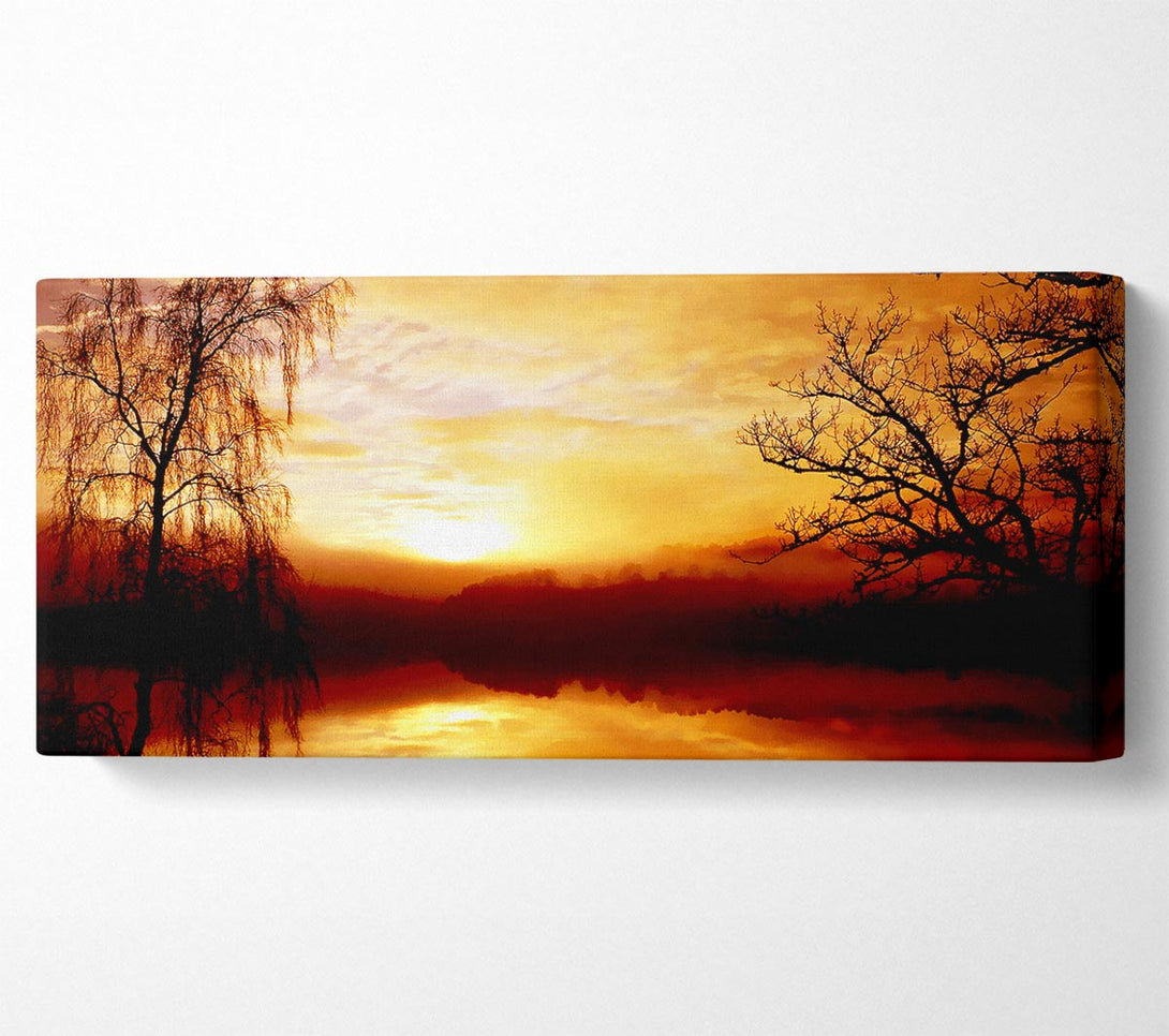 Picture of Golden Clouds Over The Lake Panoramic Canvas Wall Art
