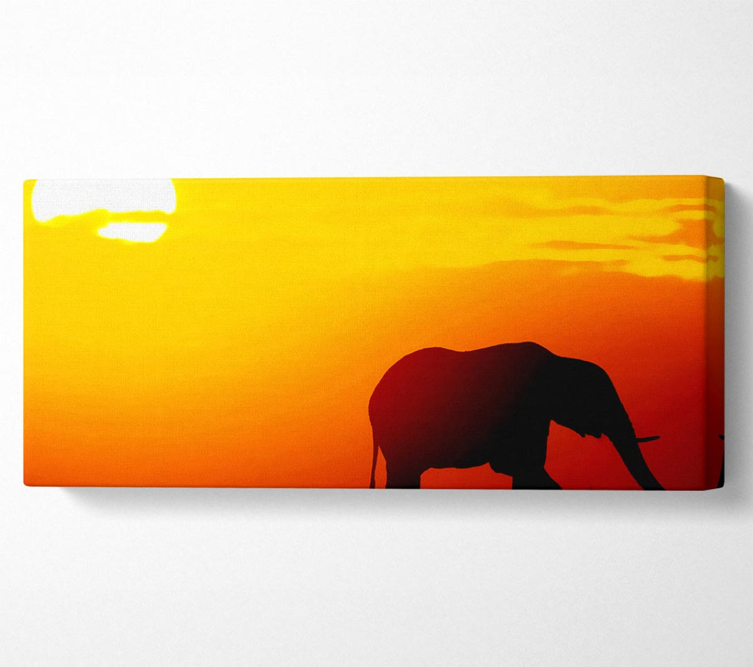 Golden Elephant canvas, printed on coated polyester canvas. Mounted on to a 44mm box frame, ready to hang.