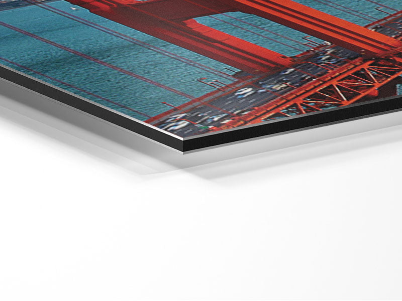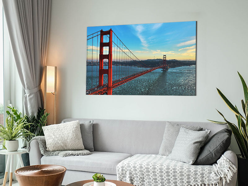 Golden Gate Bridge Blue Waters Printed on brushed aluminium dibond. A modern way to display art and easy to maintain.