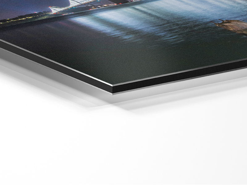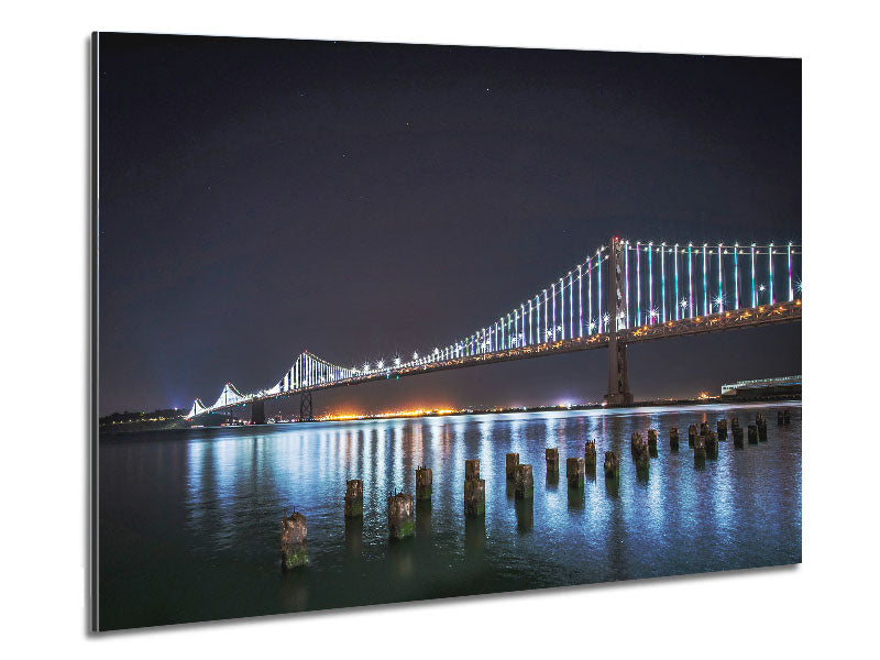 Golden Gate Bridge Light Reflections Printed on brushed aluminium dibond. A modern way to display art and easy to maintain.