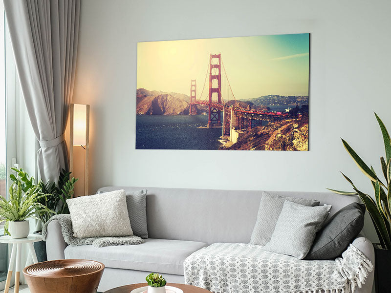 Golden Gate Bridge Retro Printed on brushed aluminium dibond. A modern way to display art and easy to maintain.
