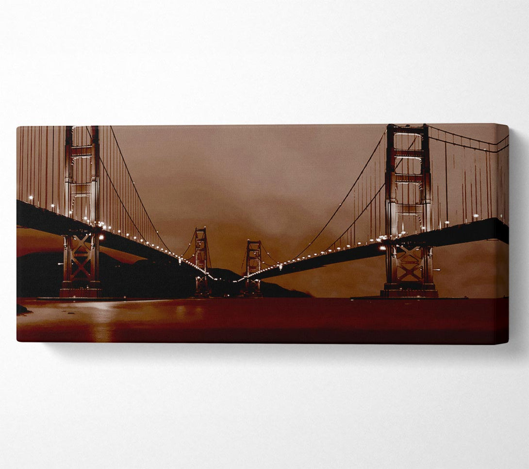 Golden Gate Bridge Twins Brown canvas, printed on coated polyester canvas. Mounted on to a 44mm box frame, ready to hang.