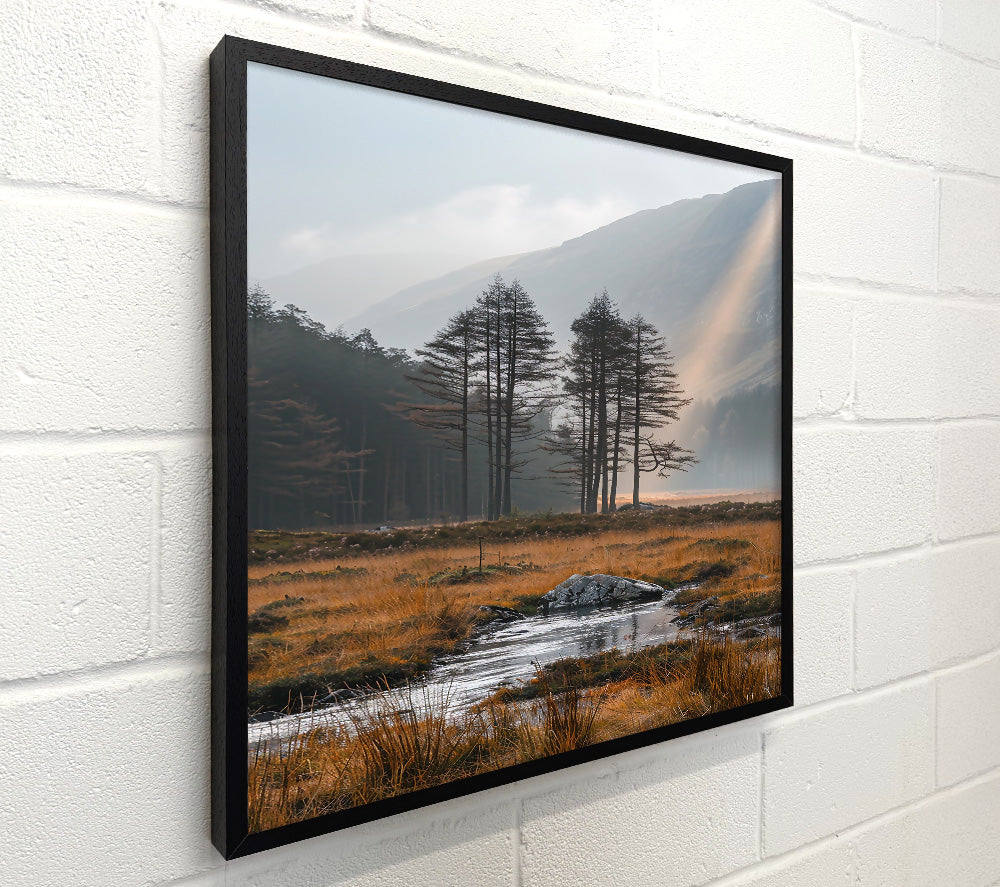 Golden Light Through Pines