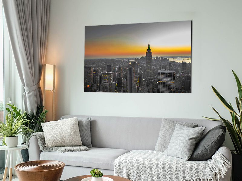 Golden Printed on brushed aluminium dibond. A modern way to display art and easy to maintain.