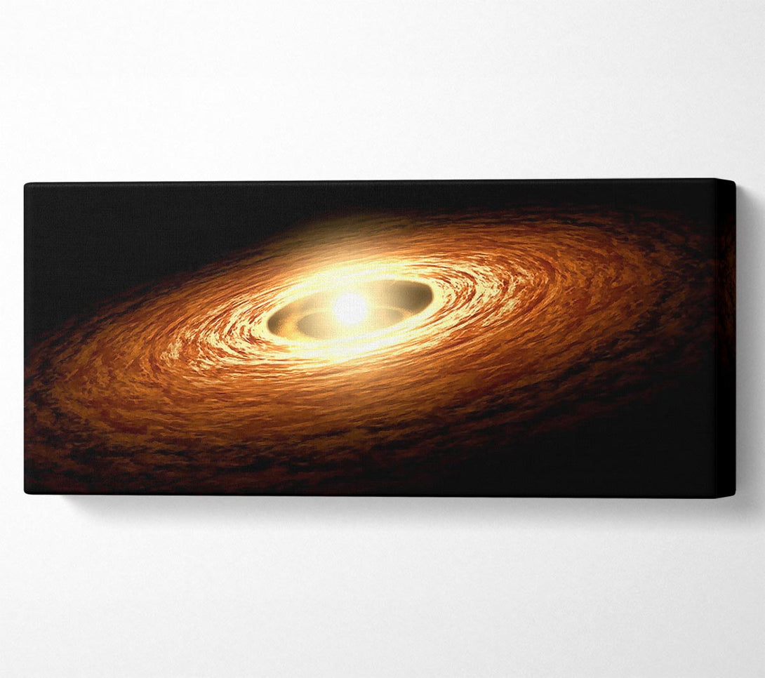 Golden Ring Galaxy canvas, printed on coated polyester canvas. Mounted on to a 44mm box frame, ready to hang.