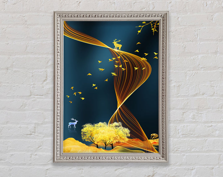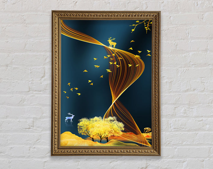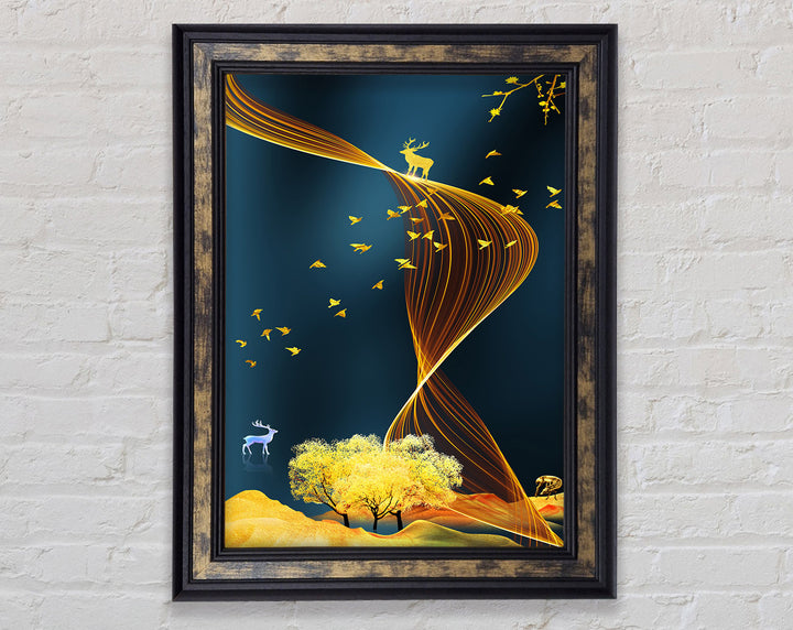 Introducing the Golden Scene With Swirls Framed Print, a stunning piece of framed art that will transform any room with its elegant design. This beautiful print features a captivating golden scene with intricate swirls, adding a touch of sophistication to your space. Available in 6 sizes, from small to oversized, you can find the perfect fit for any wall. Choose from a variety of colors to match your decor effortlessly. Each print is handmade in the United Kingdom, ensuring exceptional quality and craftsmanship. Best of all, it arrives ready to hang, making it easy to add instant style to your home.