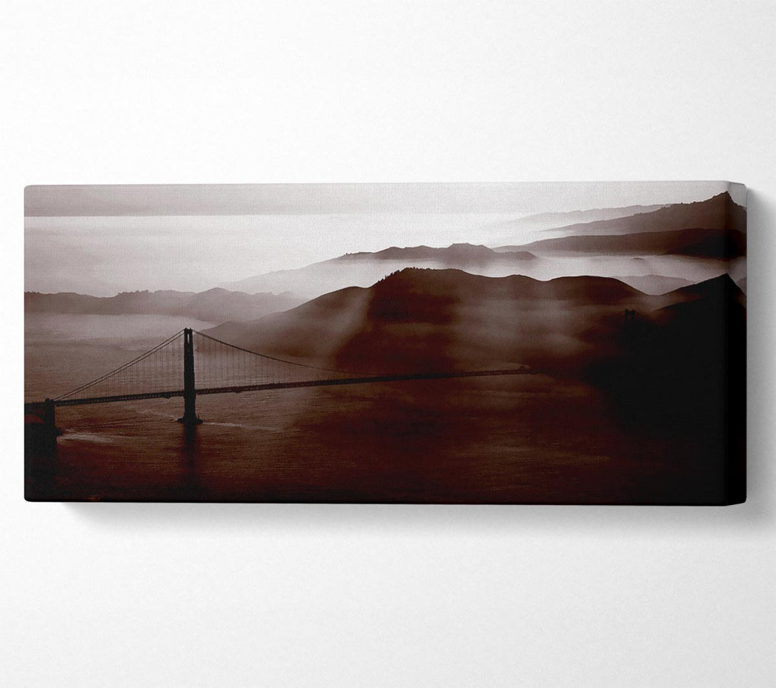 Picture of Goldon Gate Bridge Misty Morning Brown Panoramic Canvas Wall Art
