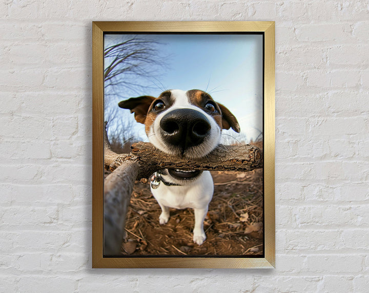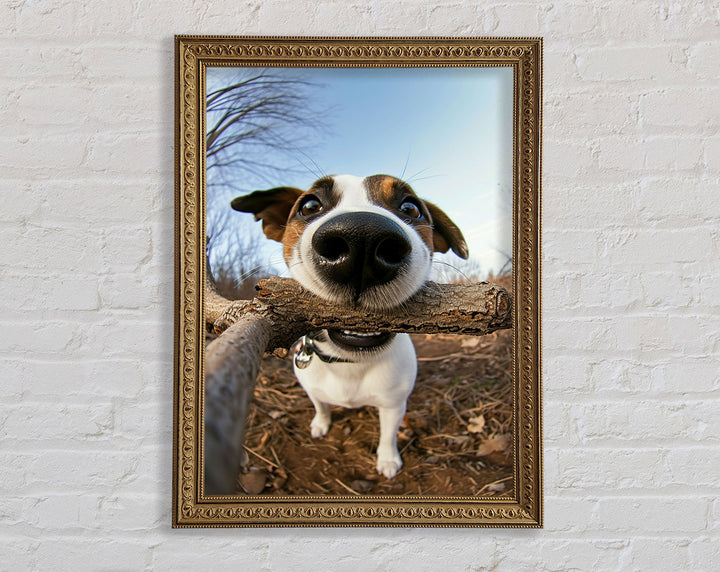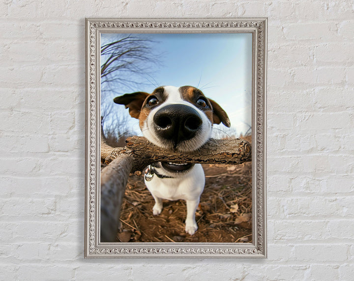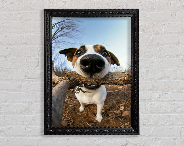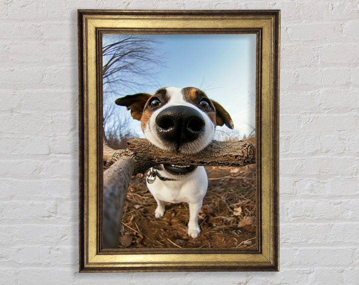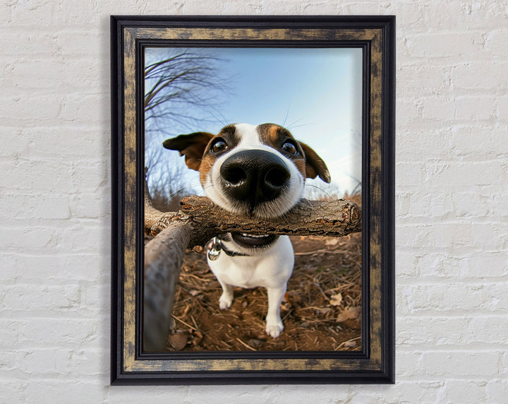 Good Boy With Stick Framed Print