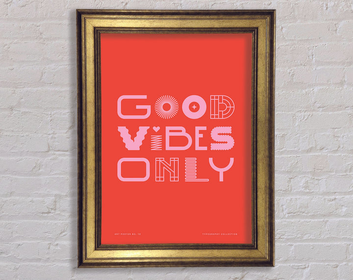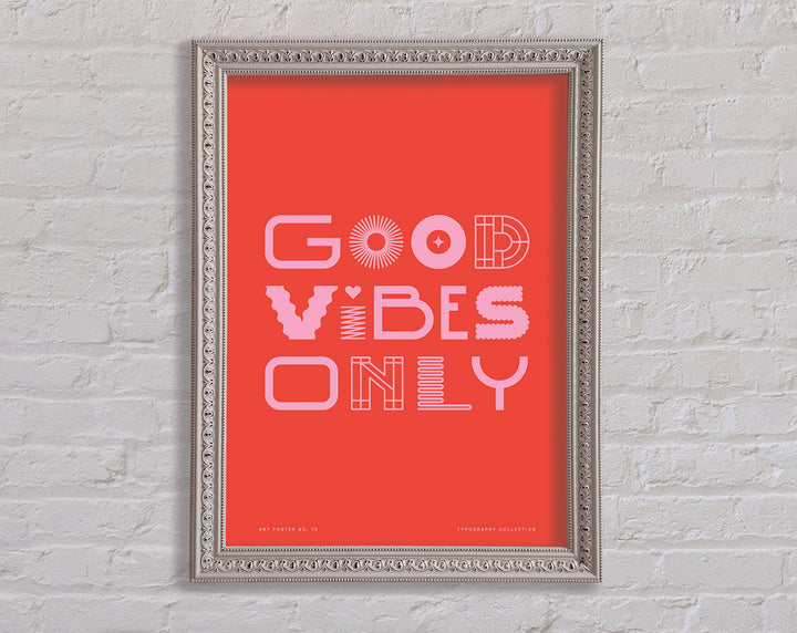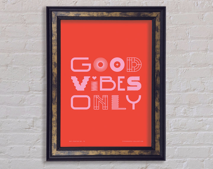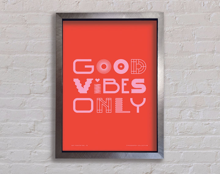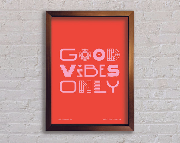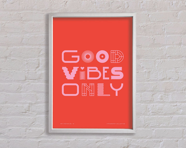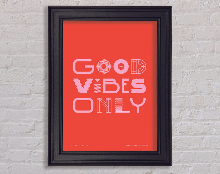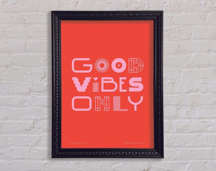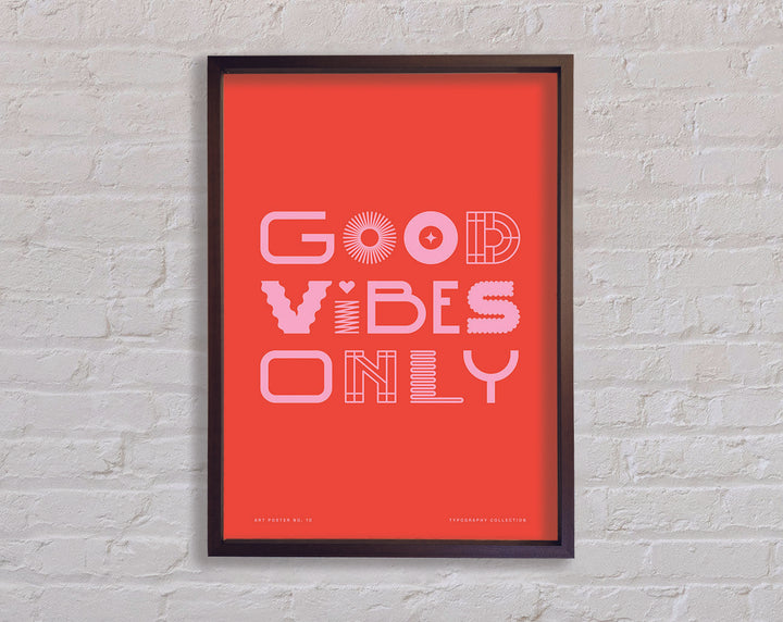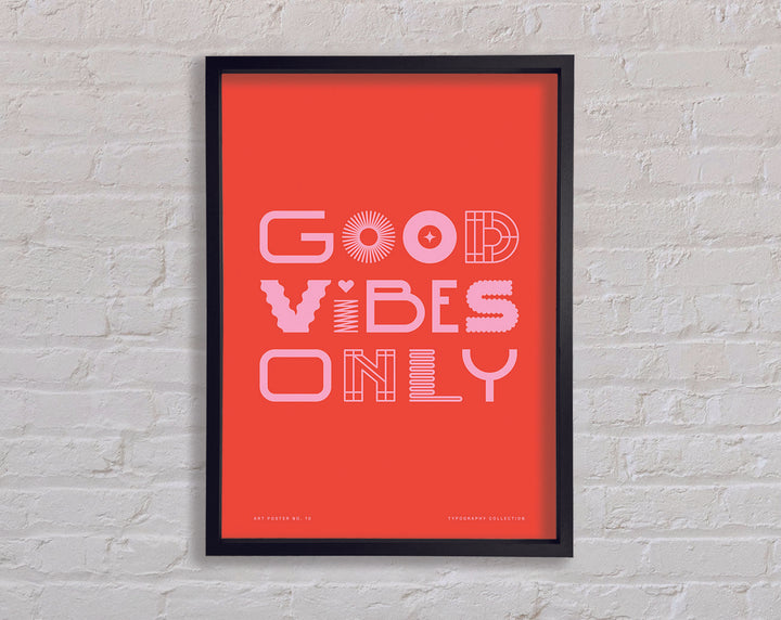 Add a touch of positivity to your space with the Good Vibes Only Framed Print. This stunning piece of framed art is available in six different sizes, ranging from small to oversized, making it perfect for any room. Choose from a variety of vibrant colors to match your decor. Handmade in the United Kingdom, each print is crafted with care and attention to detail. The high-quality frame is not only stylish but also sturdy, ensuring that your artwork will last for years. Best of all, it comes ready to hang, so you can instantly uplift your space with good vibes.