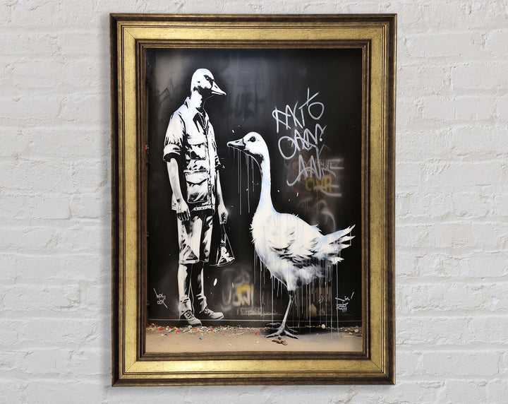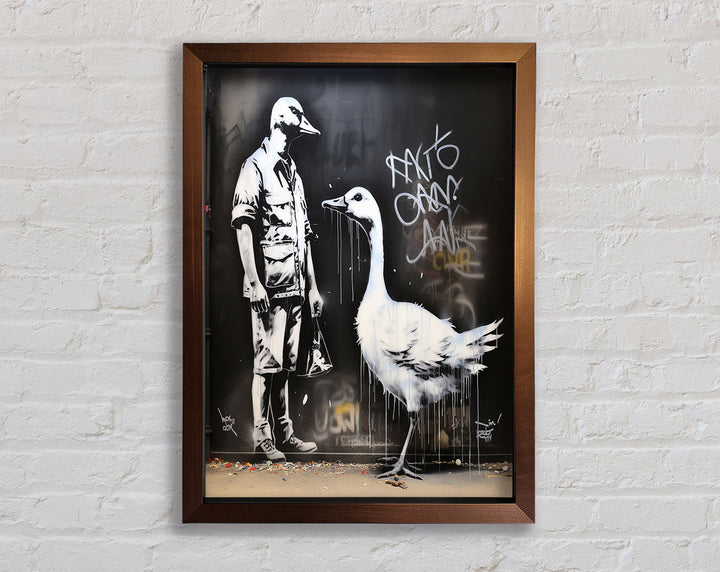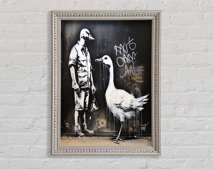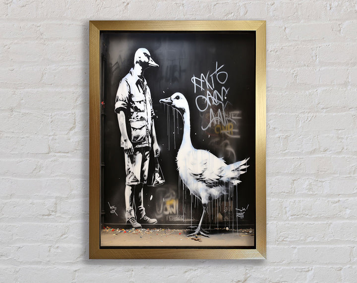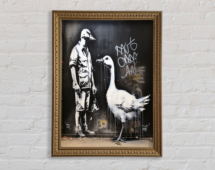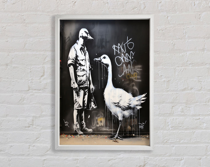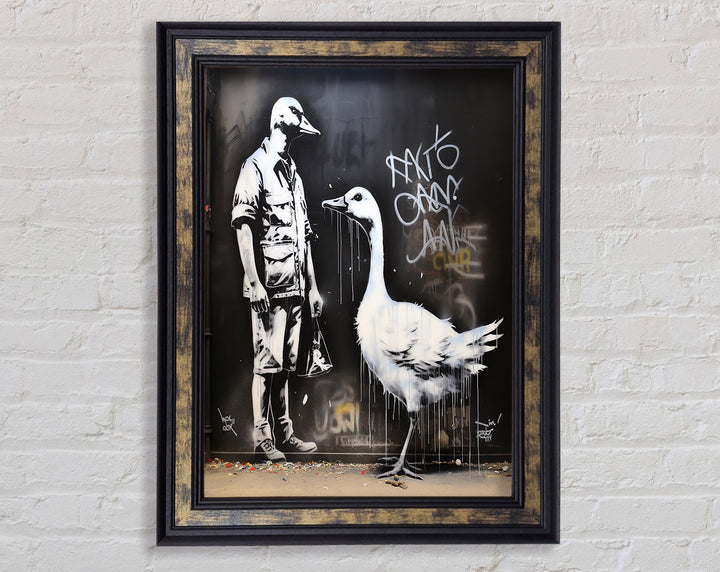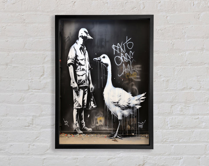 Introducing the Goose Man Graffiti Framed Print, a stunning piece of framed art that brings urban charm and creativity to any space. This vibrant artwork showcases a unique graffiti-style depiction of a whimsical goose character, making it a perfect conversation starter. Available in six sizes, from small to oversized, you can find the ideal fit for any room. Choose from a variety of colors to match your decor. Each print is handmade in the United Kingdom, ensuring exceptional quality and attention to detail. Ready to hang, this framed art piece is an effortless way to add personality and flair to your home or office.