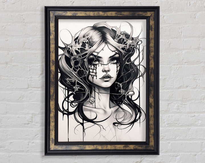 Add a touch of mystery to your space with the Gothic Girl Sketch Framed Print. This stunning piece of framed art captures the essence of gothic elegance with intricate detailing and a hauntingly beautiful design. Available in six sizes, from small to oversized, you can choose the perfect fit for your room. The print comes in a variety of colors to match your decor and is ready to hang for your convenience. Each piece is handmade in the United Kingdom, ensuring high-quality craftsmanship. Enhance your home with this unique artwork that blends dark charm with artistic finesse.