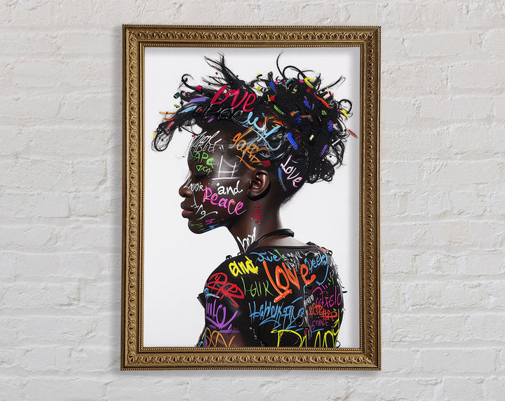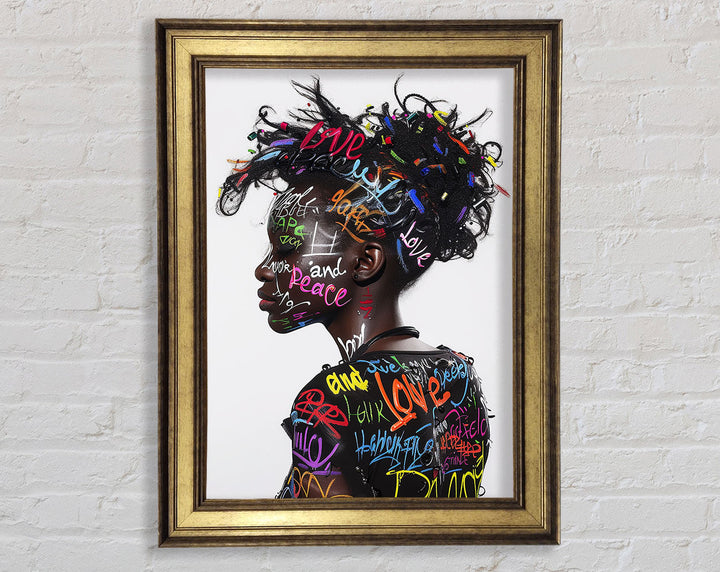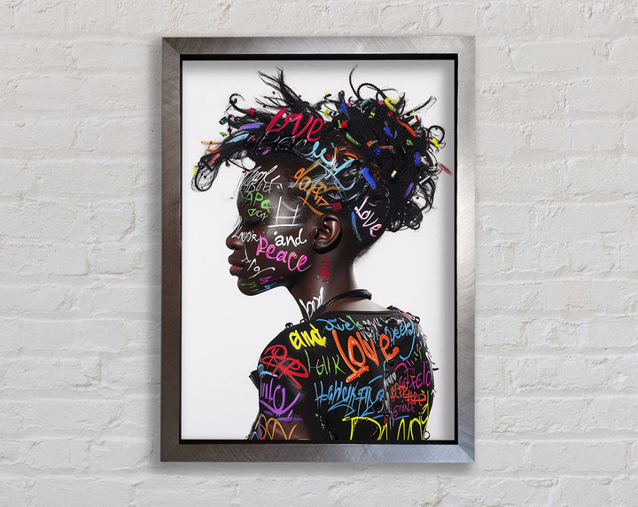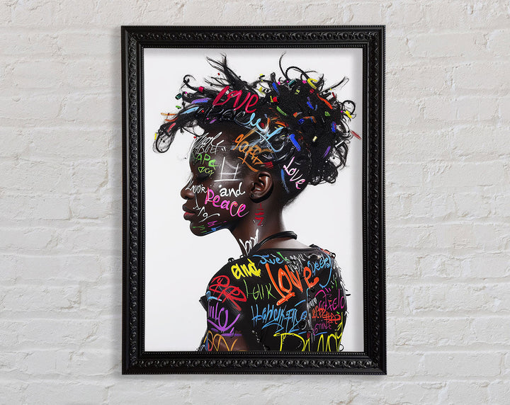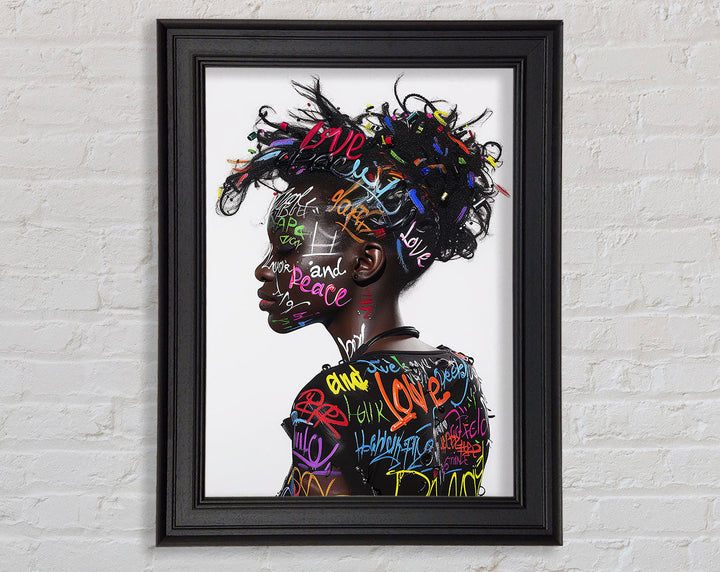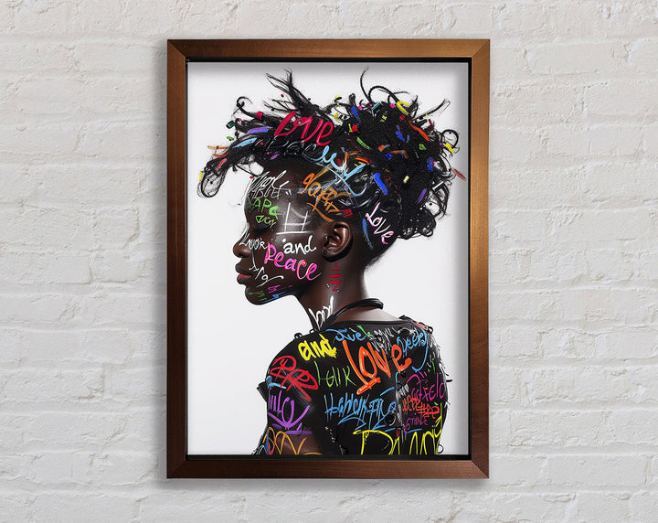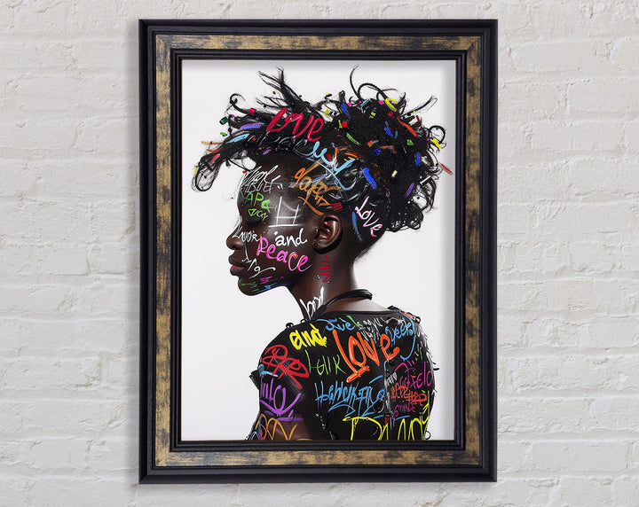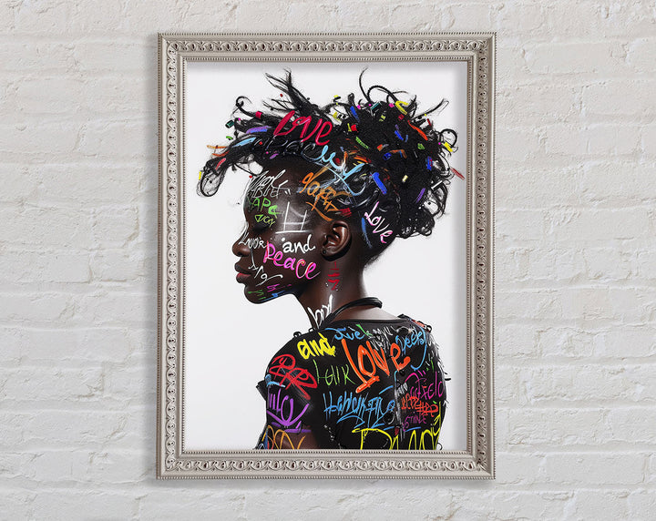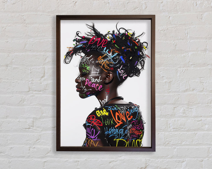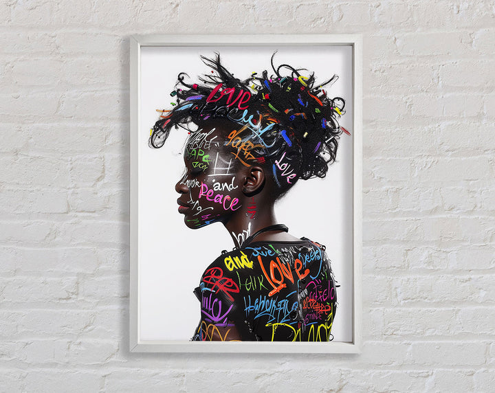 Introducing the Graffiti All Over Woman Framed Print, a stunning piece of framed art that brings urban energy and modern style to your space. This unique artwork showcases a vibrant, graffiti-inspired design featuring a woman's face, blending colors and patterns for a bold statement. Available in six sizes, from small to oversized, you can choose the perfect fit for any room. The print comes in a variety of colors, allowing you to match it with your existing decor. Handmade in the United Kingdom, each piece is crafted with care and attention to detail. Plus, it arrives ready to hang, making it easy to elevate your home's aesthetic instantly.
