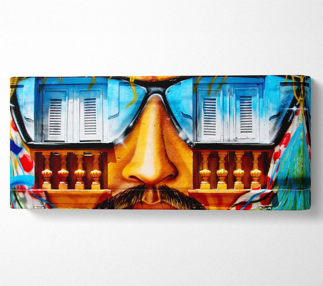 Graffiti Mexican Man canvas, printed on coated polyester canvas. Mounted on to a 44mm box frame, ready to hang.