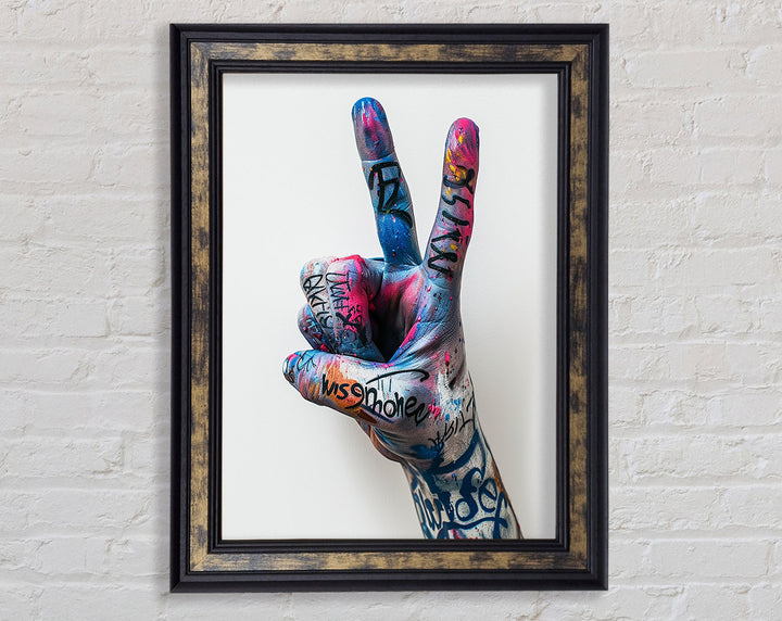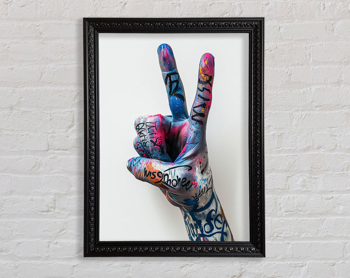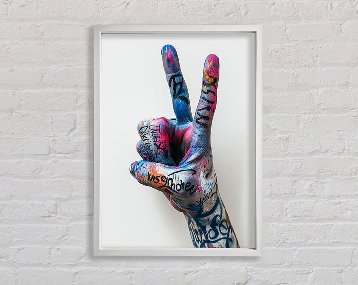 Introducing the Graffiti Peace Framed Print, a stunning piece of framed art that adds a vibrant touch to any room. This unique artwork features a bold graffiti design symbolizing peace, blending street art with a powerful message. Available in six sizes, from small to oversized, you can find the perfect fit for your space. Choose from a variety of colors to match your decor effortlessly. Handmade in the United Kingdom, each print is crafted with care and precision. Ready to hang, this framed art piece offers a hassle-free way to elevate your home or office. Brighten up your walls and inspire tranquility with the Graffiti Peace Framed Print.