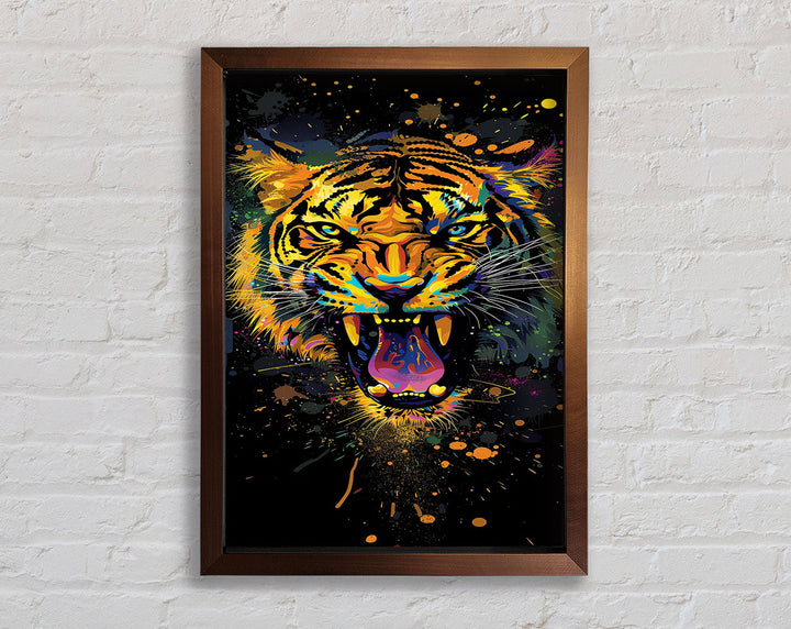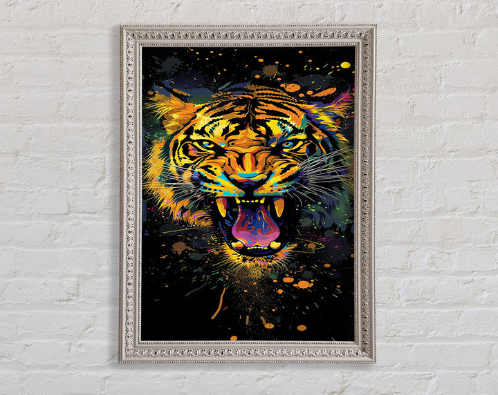 The Graffiti Splatter Tiger Framed Print is a stunning piece of framed art that brings vibrant energy to any space. This captivating print features a dynamic tiger design splashed with bold, graffiti-inspired colors. Available in six sizes, from small to oversized, this artwork can fit perfectly in any room, whether you want a subtle accent or a commanding centerpiece. Each piece is handmade in the United Kingdom, ensuring top-notch quality and craftsmanship. The variety of colors available allows you to match the print with your existing decor effortlessly. Ready to hang, this framed art makes it easy to add a touch of modern flair to your home or office.