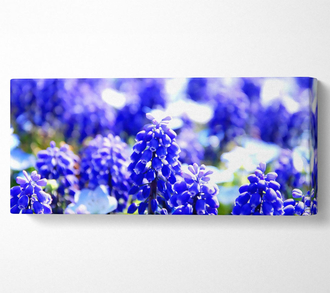 Grape Hyacinths canvas, printed on coated polyester canvas. Mounted on to a 44mm box frame, ready to hang.