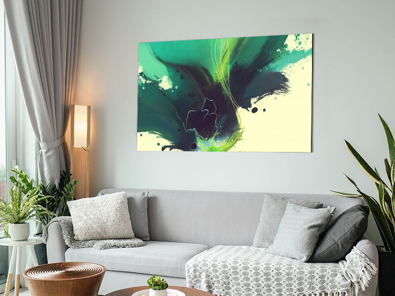 Green And Blue Brush Strokes Printed on brushed aluminium dibond. A modern way to display art and easy to maintain.